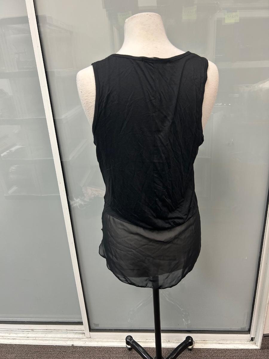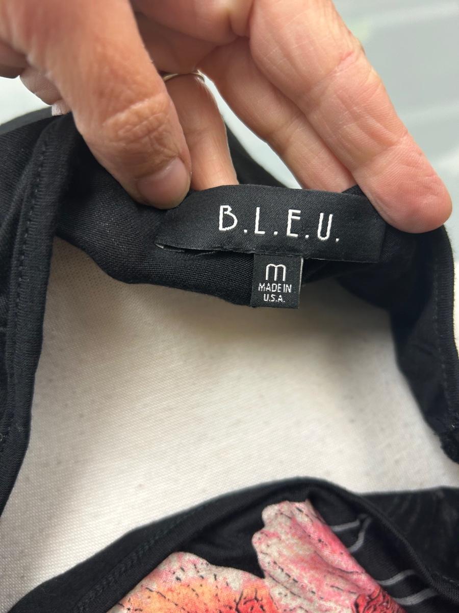 B.L.E.U. Black with Pink Flower Pattern Tank Top Sleeveless Tunic Medium. In good condition. Has some embellishments on the flowers.