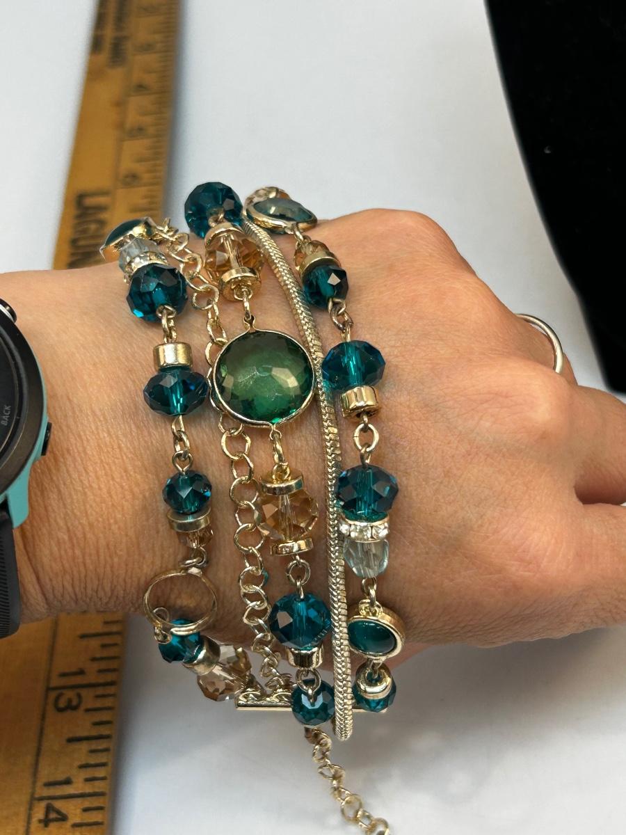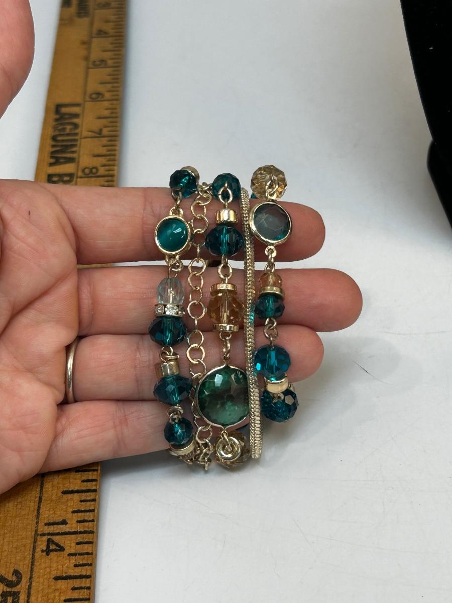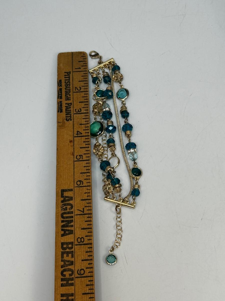 Multi Strand Silver Tone with Turquoise Colored Beads Fashion Bracelet White House Black Market