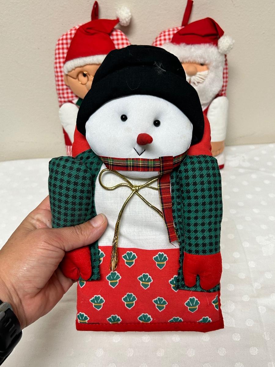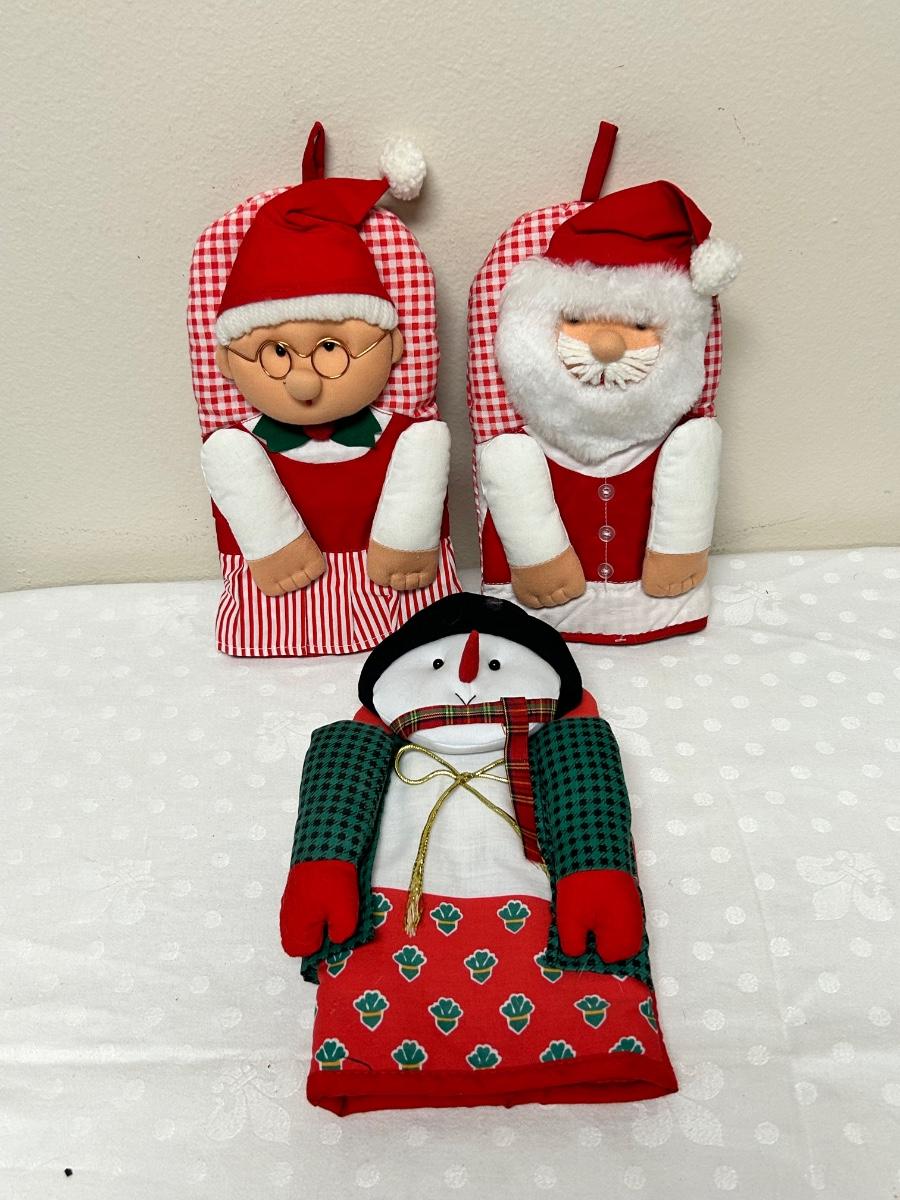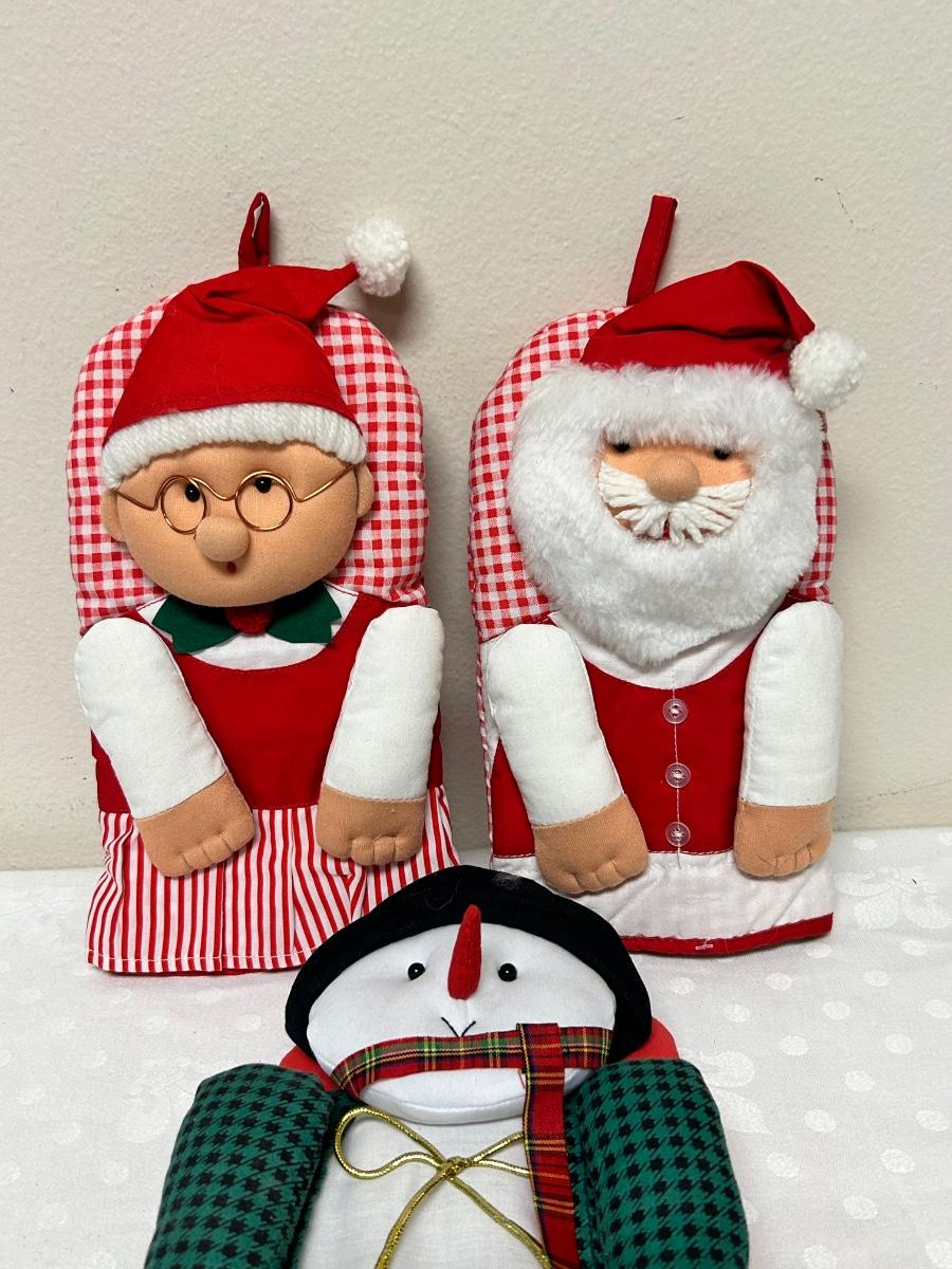 Lot of Three Novelty Christmas Holiday Decorative Potholder Mitts Santa Mrs Claus Snowman