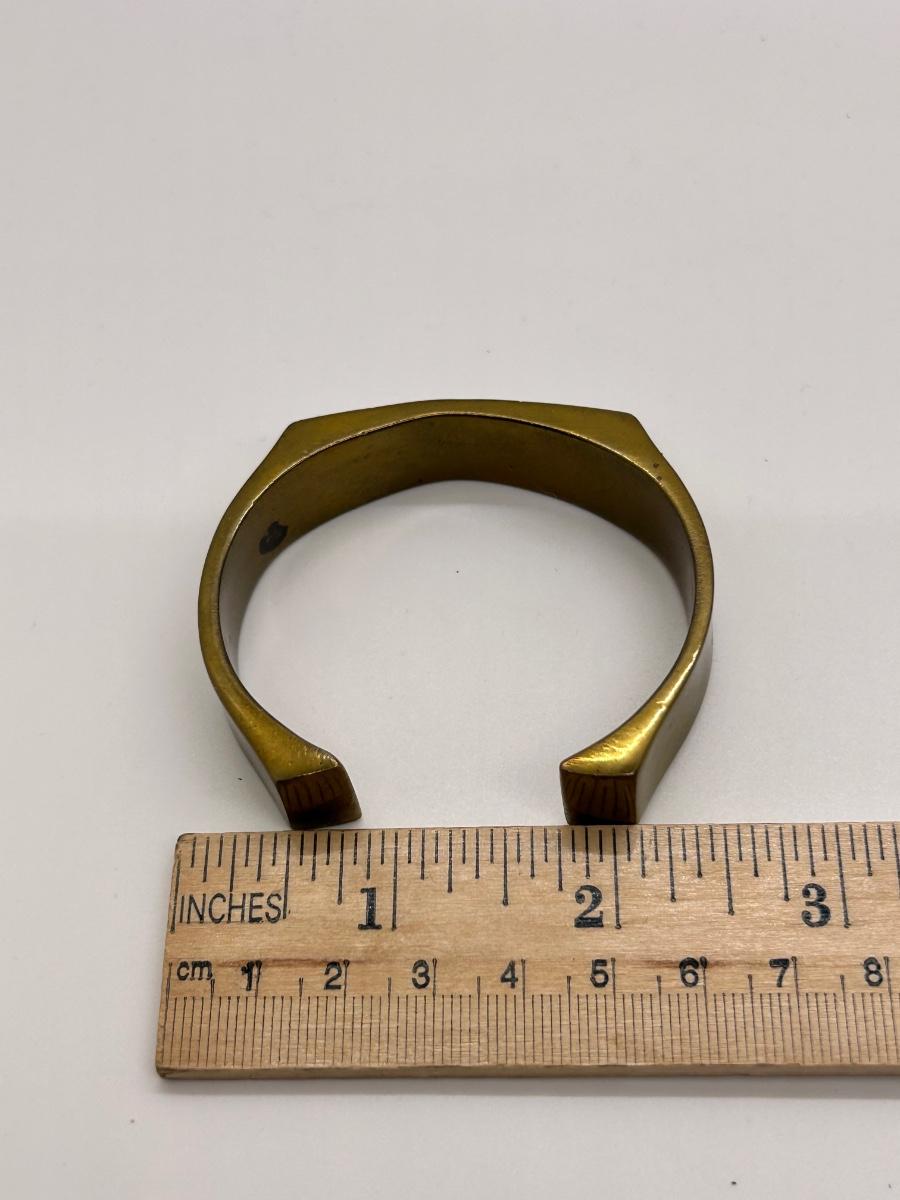 Vintage Heavy Brass Cuff Style Bracelet Enamel Detail Stripes