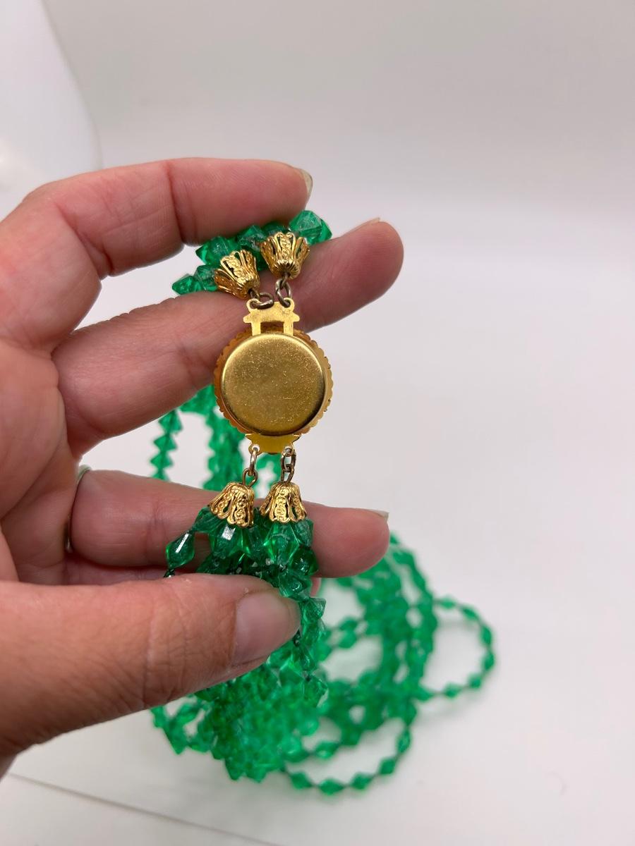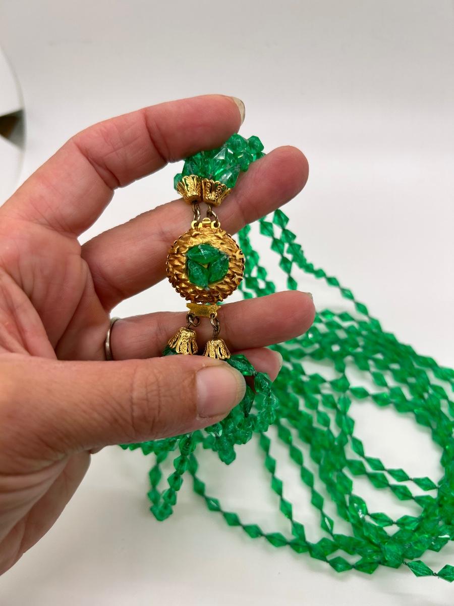 Vintage Kelly Green Plastic Multistrand Beaded Necklace