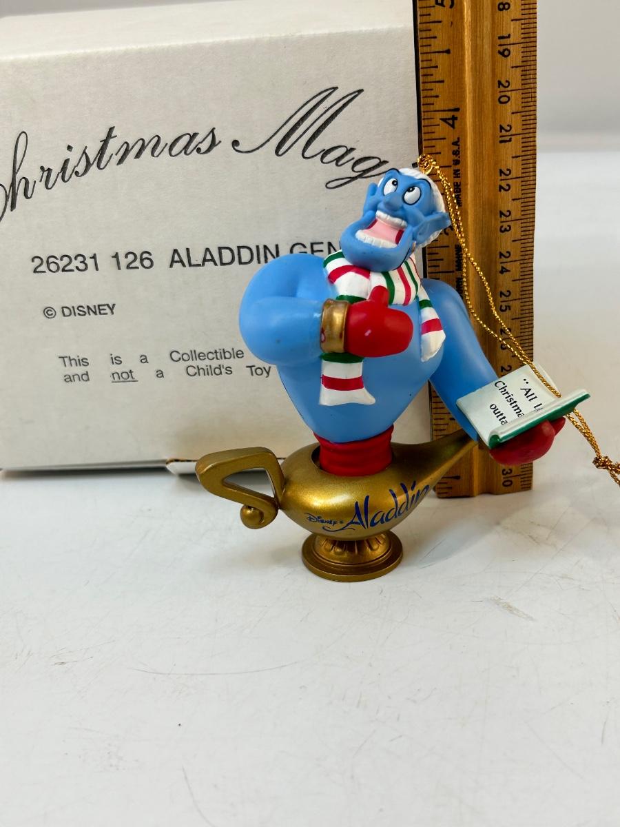 Christmas Magic Walt Disney Genie from Aladdin Christmas Holiday Ornament. In good condition. Hard plastic. Under 4" size. Comes in original box.