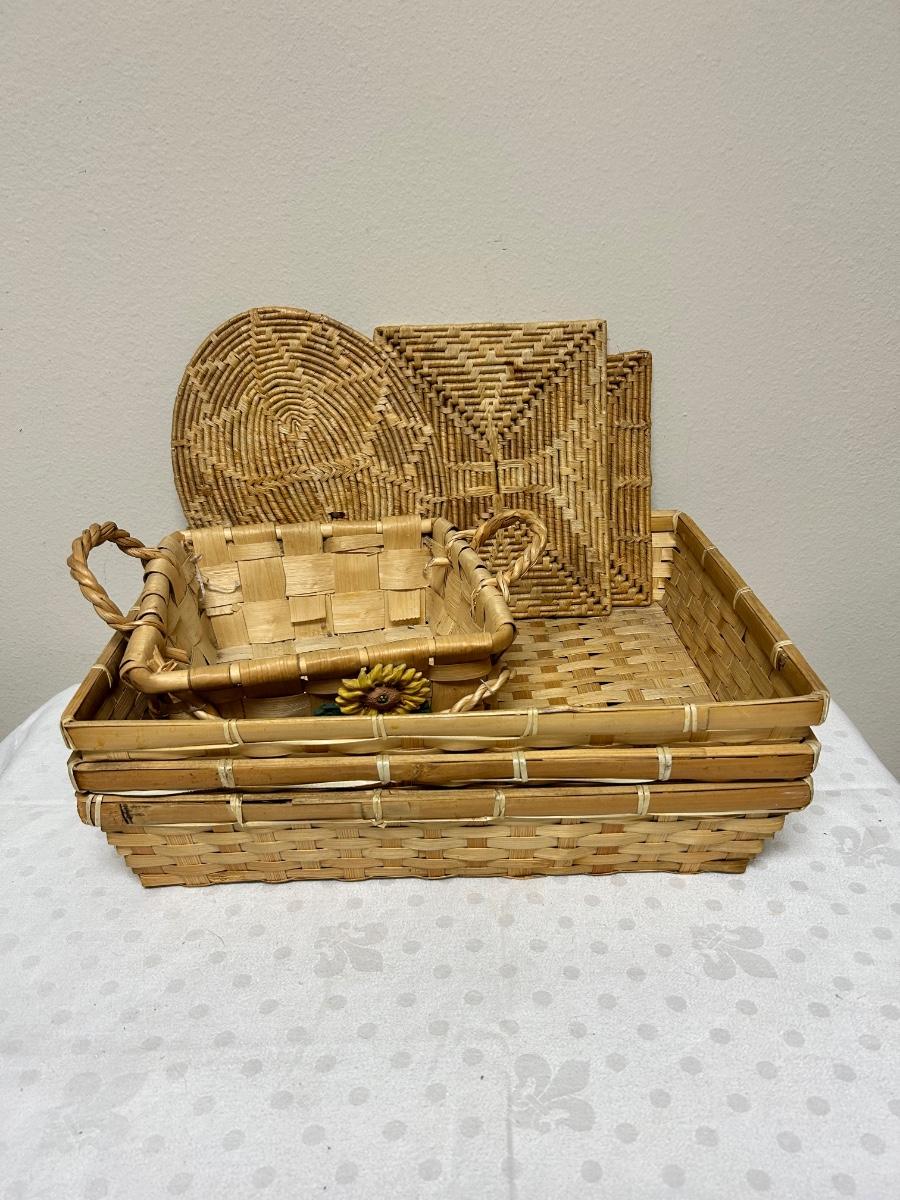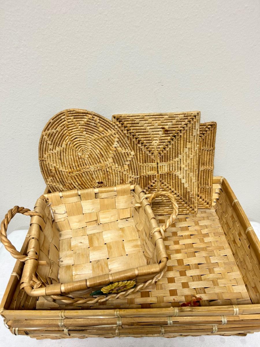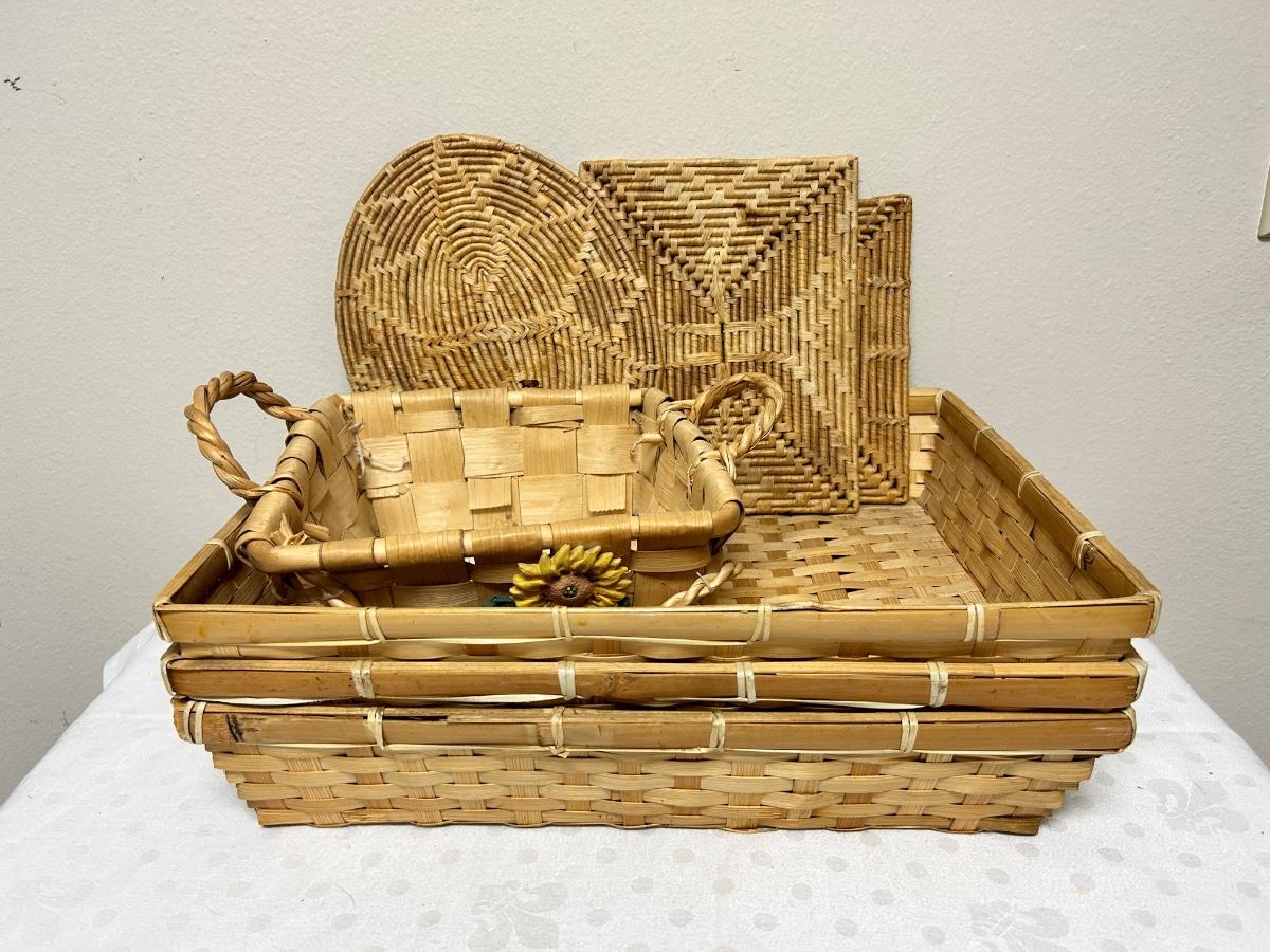 Mixed Lot of Wicker Woven Baskets and Trivets