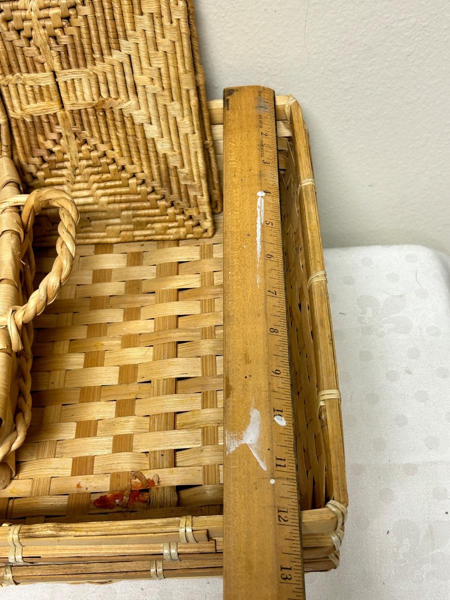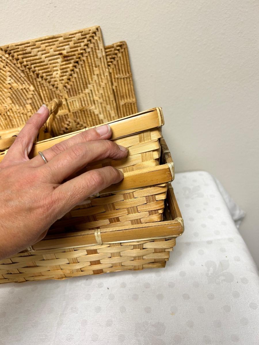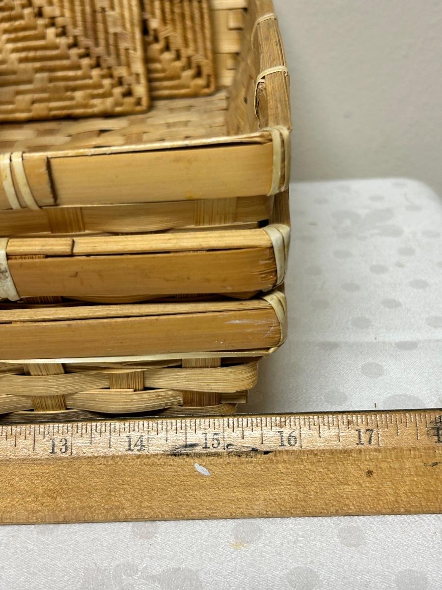 Mixed Lot of Wicker Woven Baskets and Trivets. 4 baskets, three the same size. Three woven trivets. All in good previously used conditions.