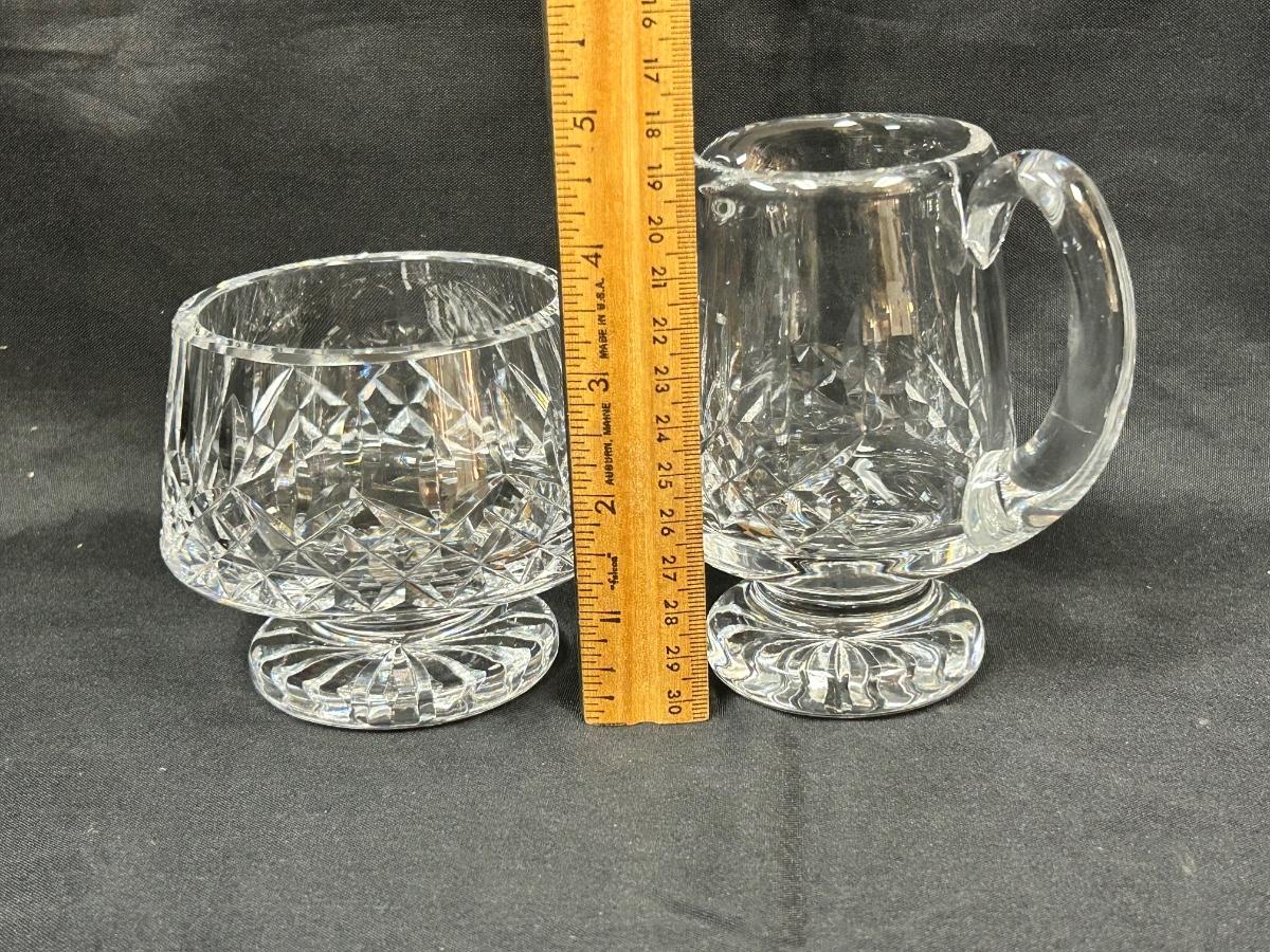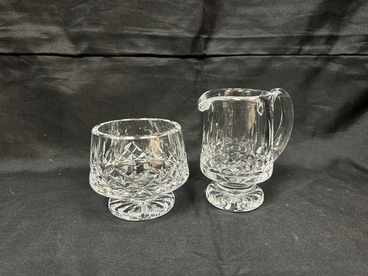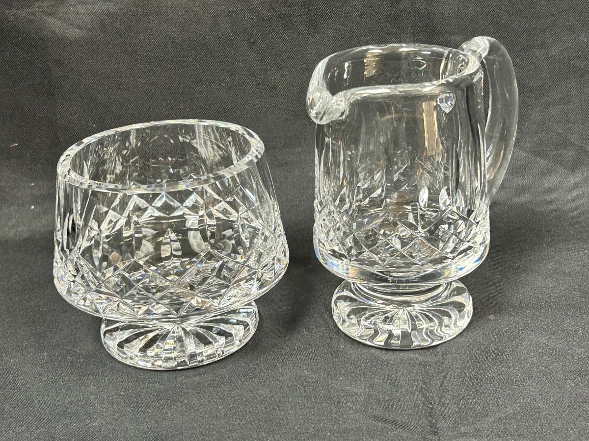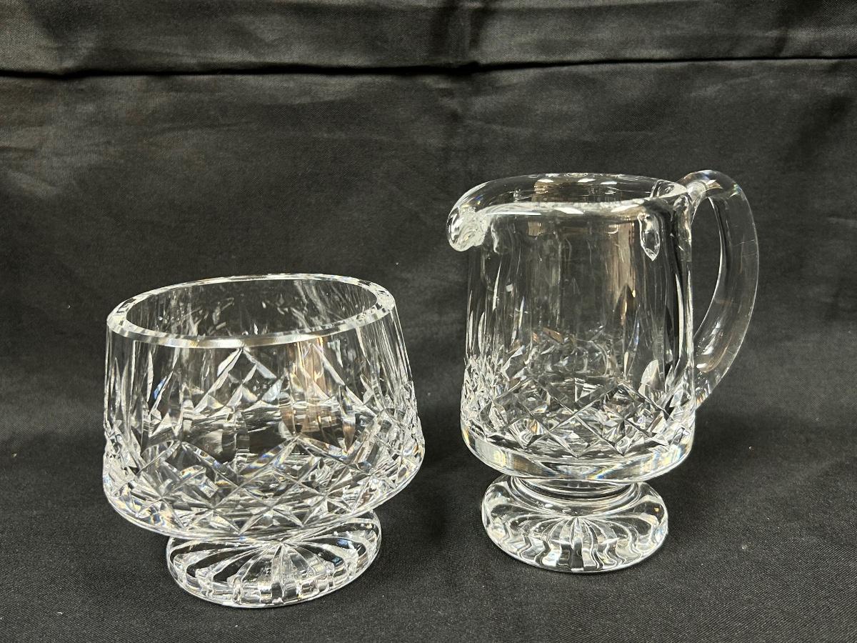 Vintage Waterford Lismore Pattern Crystal Footed Open Sugar Bowl & Creamer Pitcher