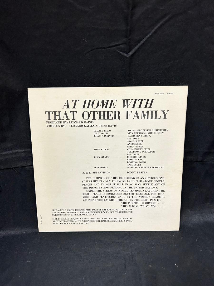 Vintage At Home With That Other Family Comedy Album 1963 Vinyl Record Roulette R25203. In good condition. Features comedy skits with voices by various artists including Joan Rivers and James Gardiner.