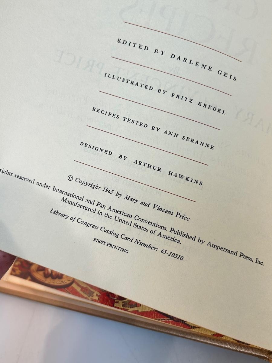 A Treasury of Great Recipes by Mary & Vincent Price Cookbook 1965 First Printing Famous Recipes Adapted for the American Kitchen
