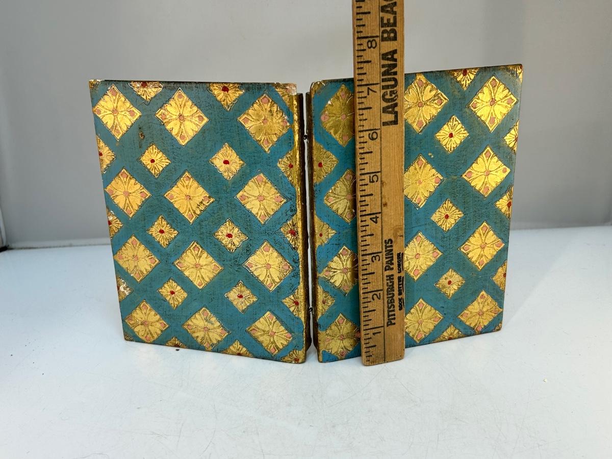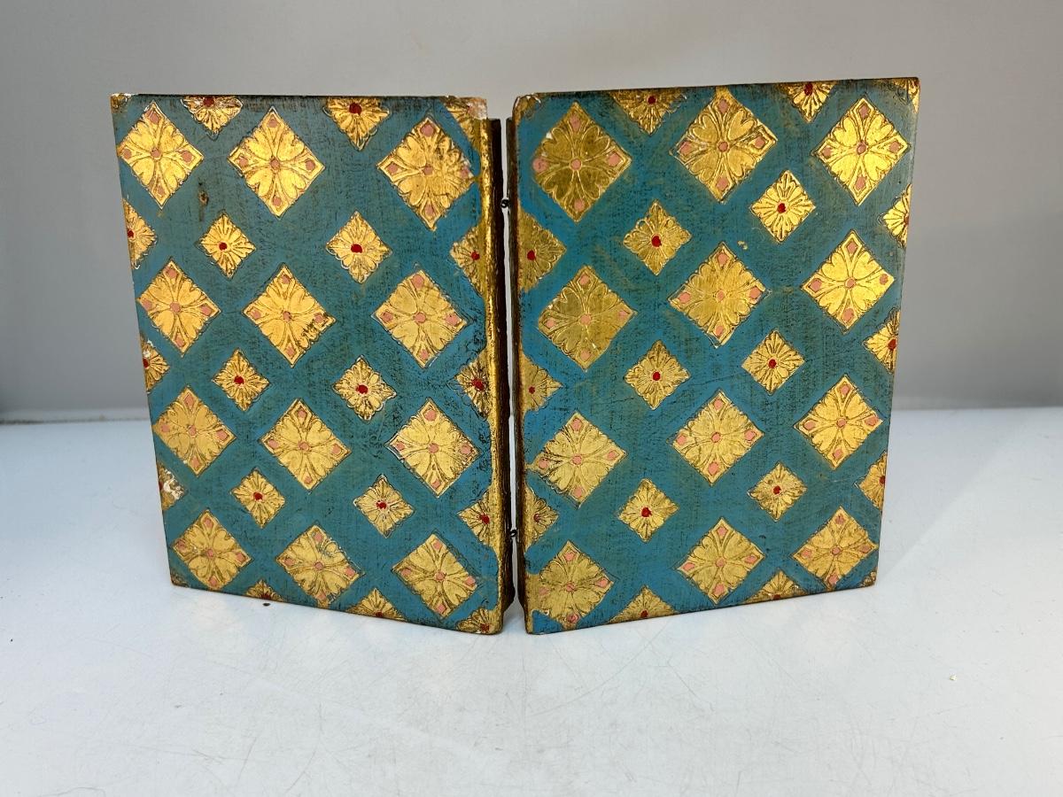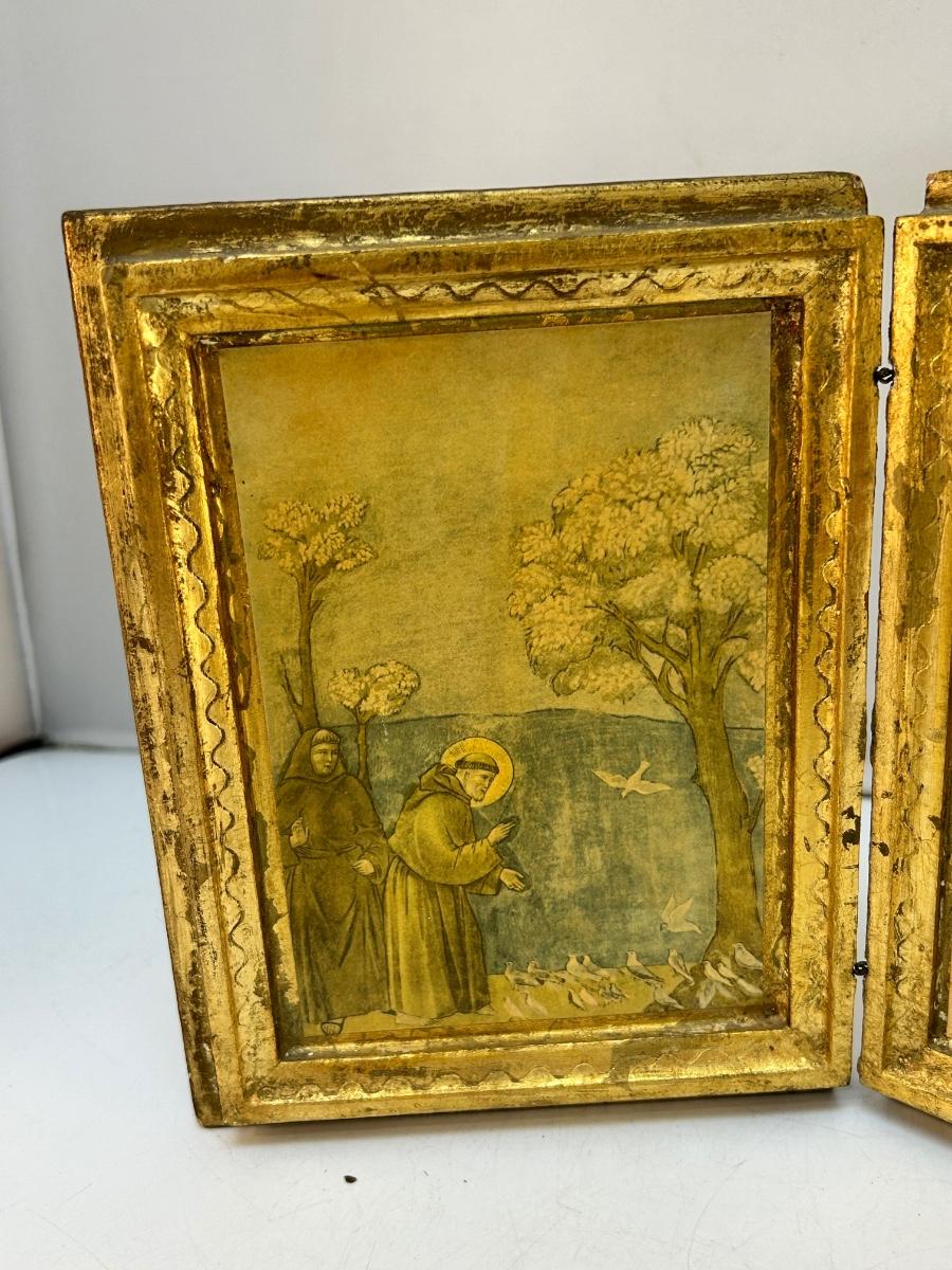 Vintage Gold Gilt Florentine Style A Simple Pray Folding Religious Art Prayer. In vintage condition. Displays nice.