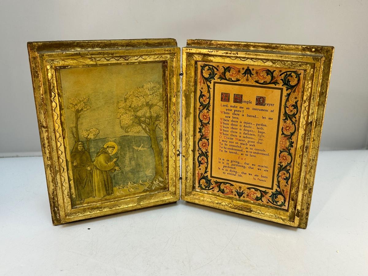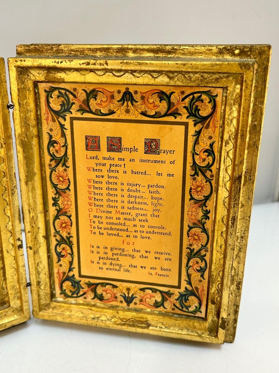 Vintage Gold Gilt Florentine Style A Simple Pray Folding Religious Art Prayer