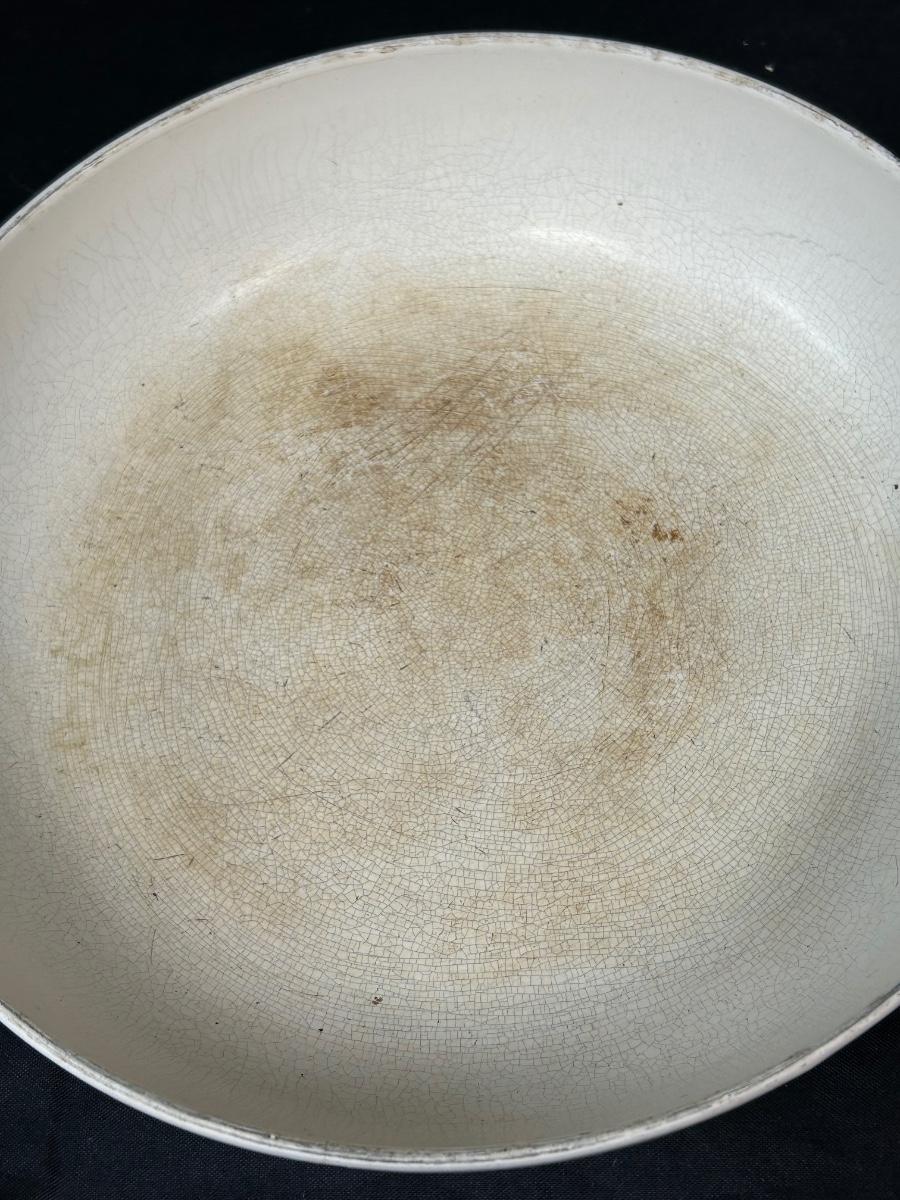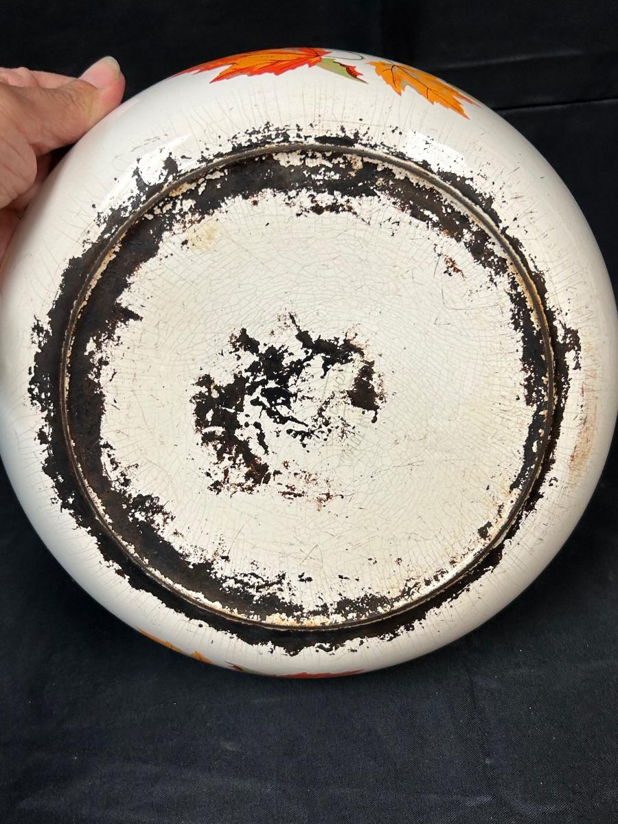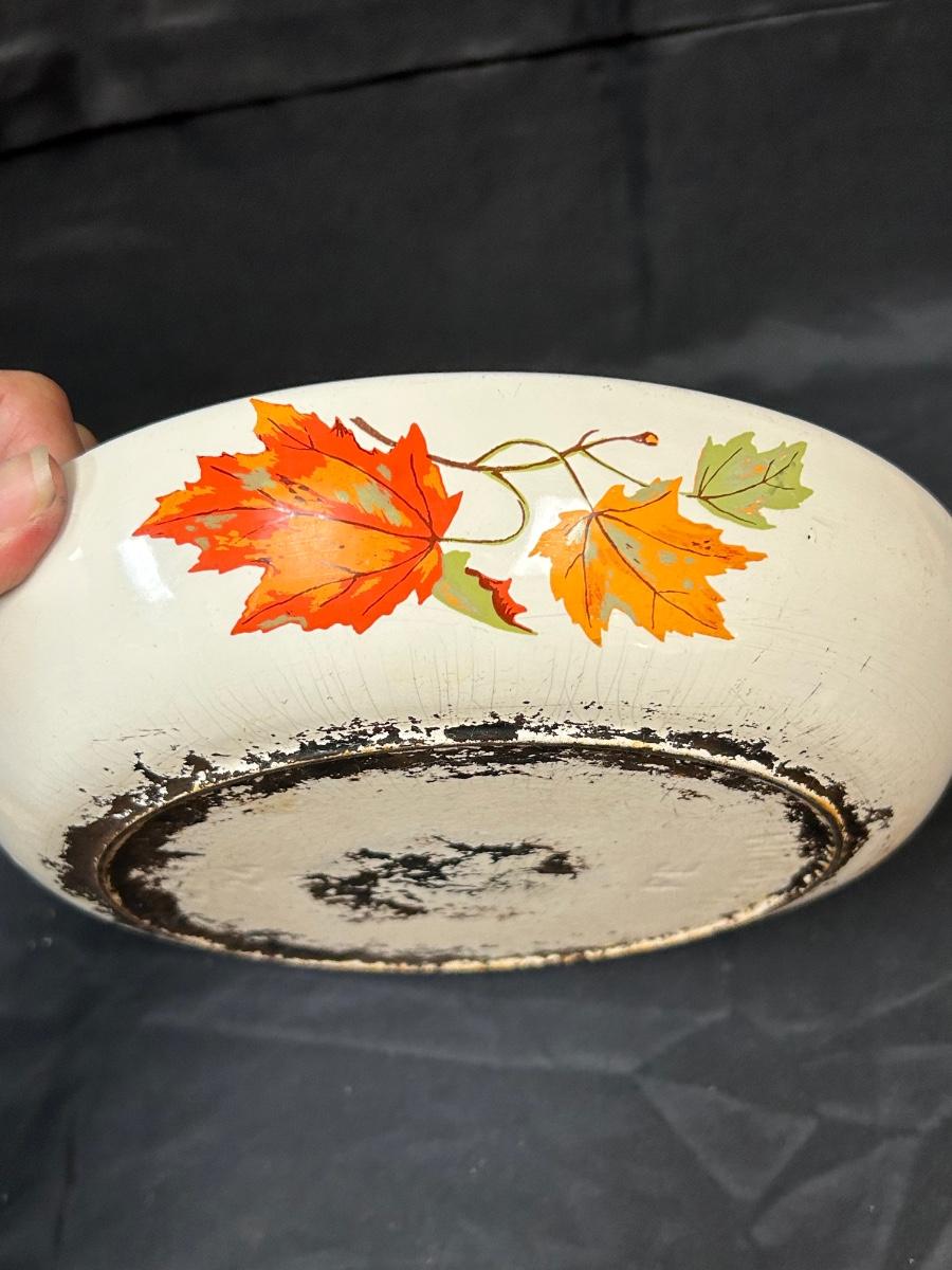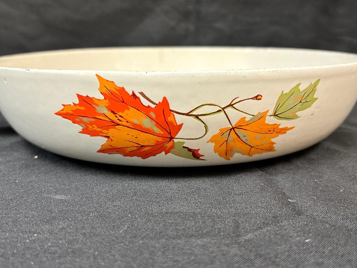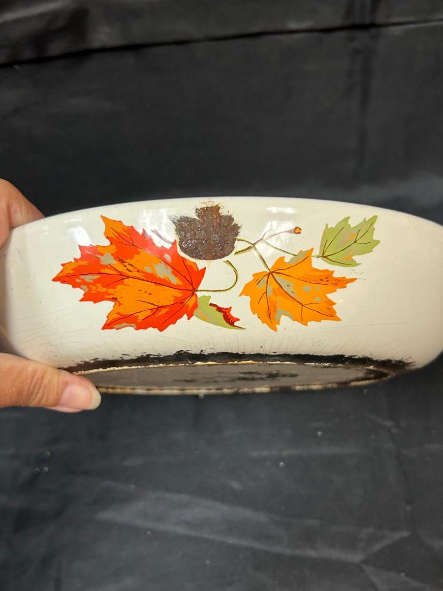 Vintage Worn Enamel over Cast Iron Skillet Fall Colored Leaves No Handle