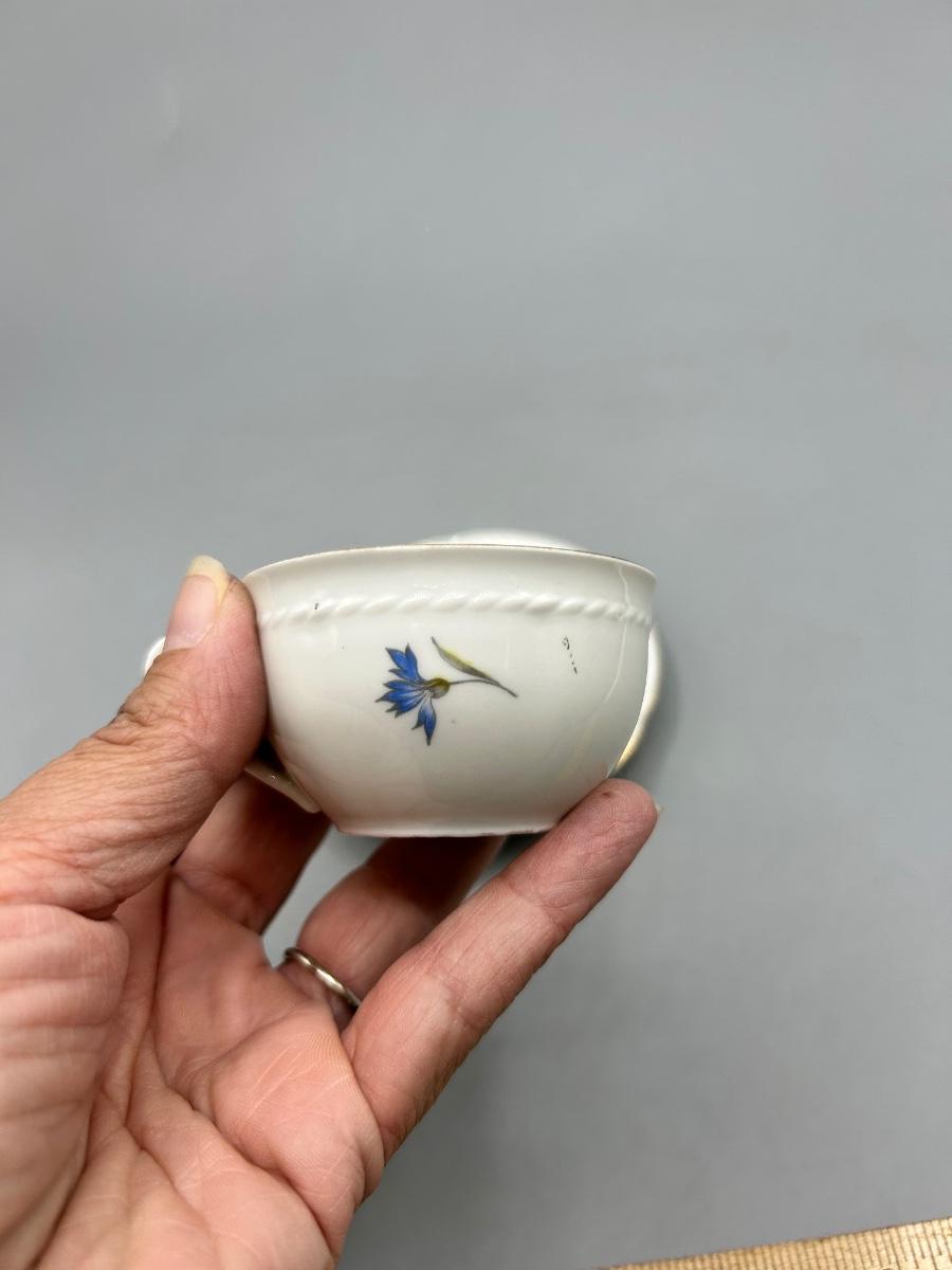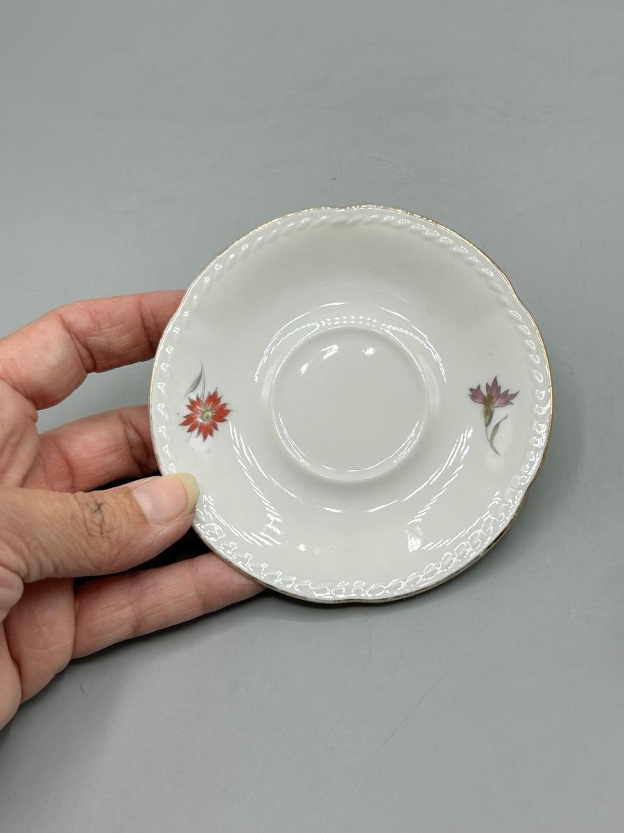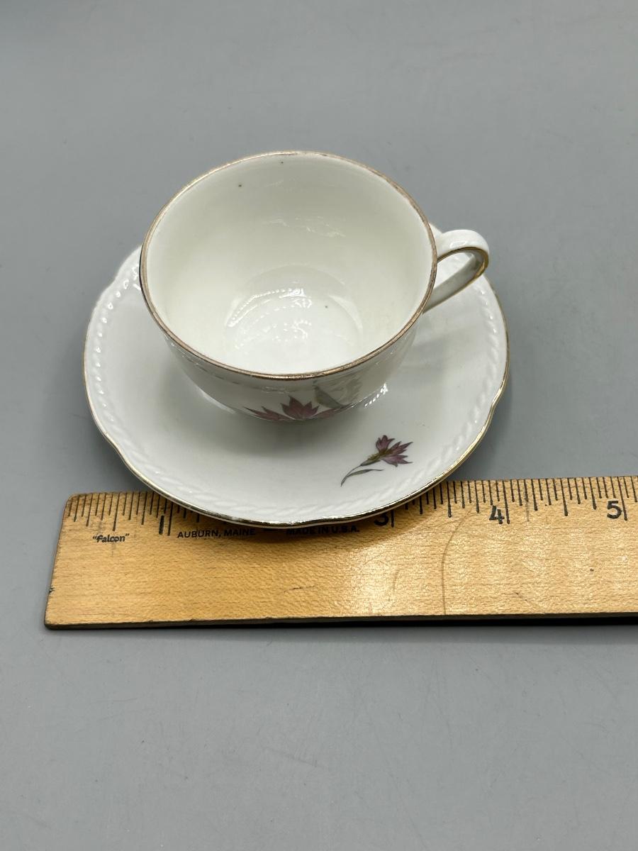 Vintage White Bone China Demitasse Teacup and Saucer with Simple Flower Print