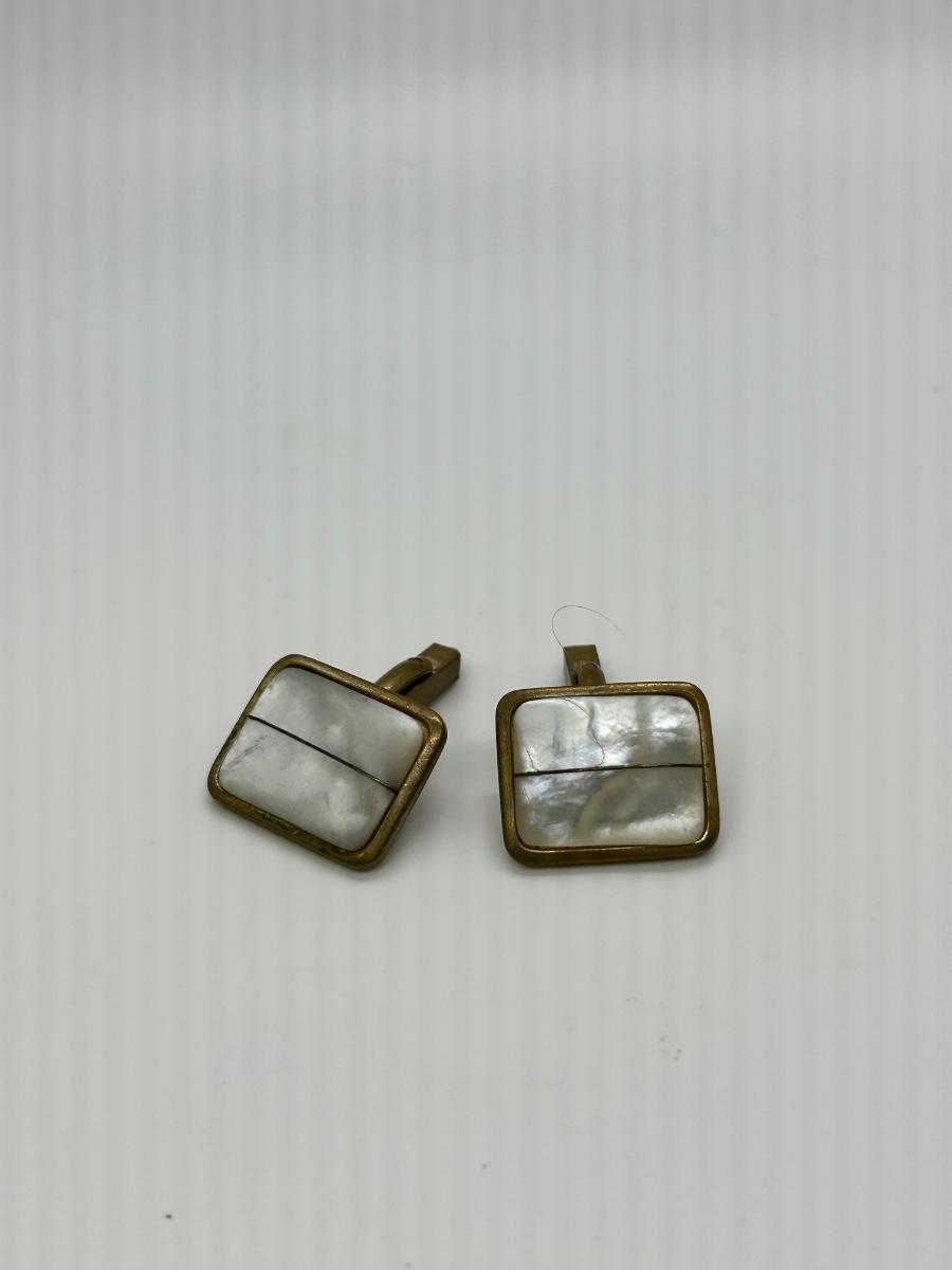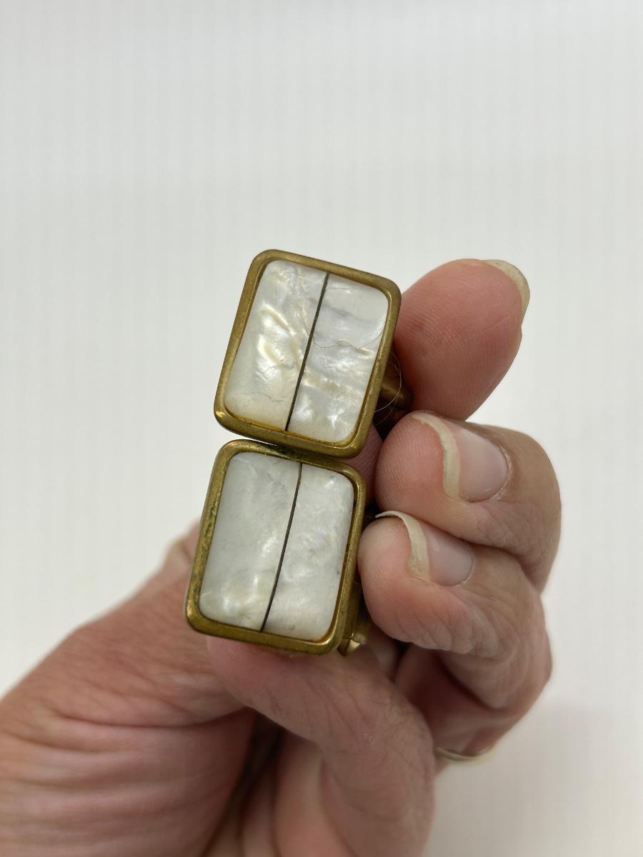 Pair of Vintage Brass & Shell Abalone Cufflinks