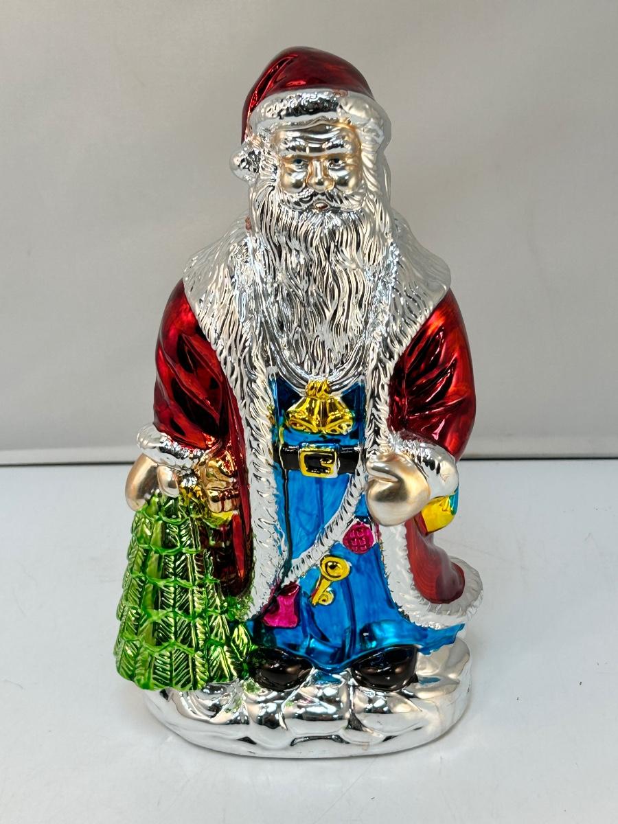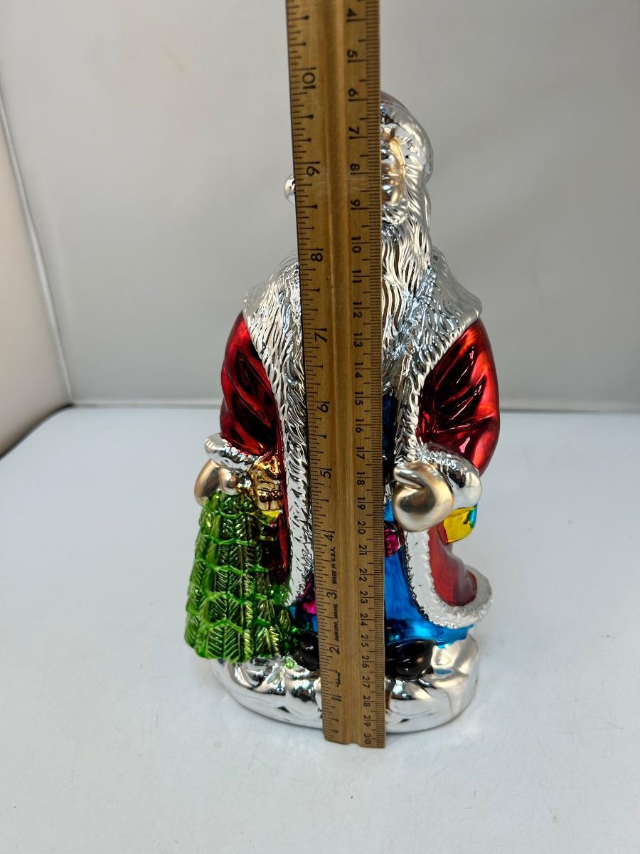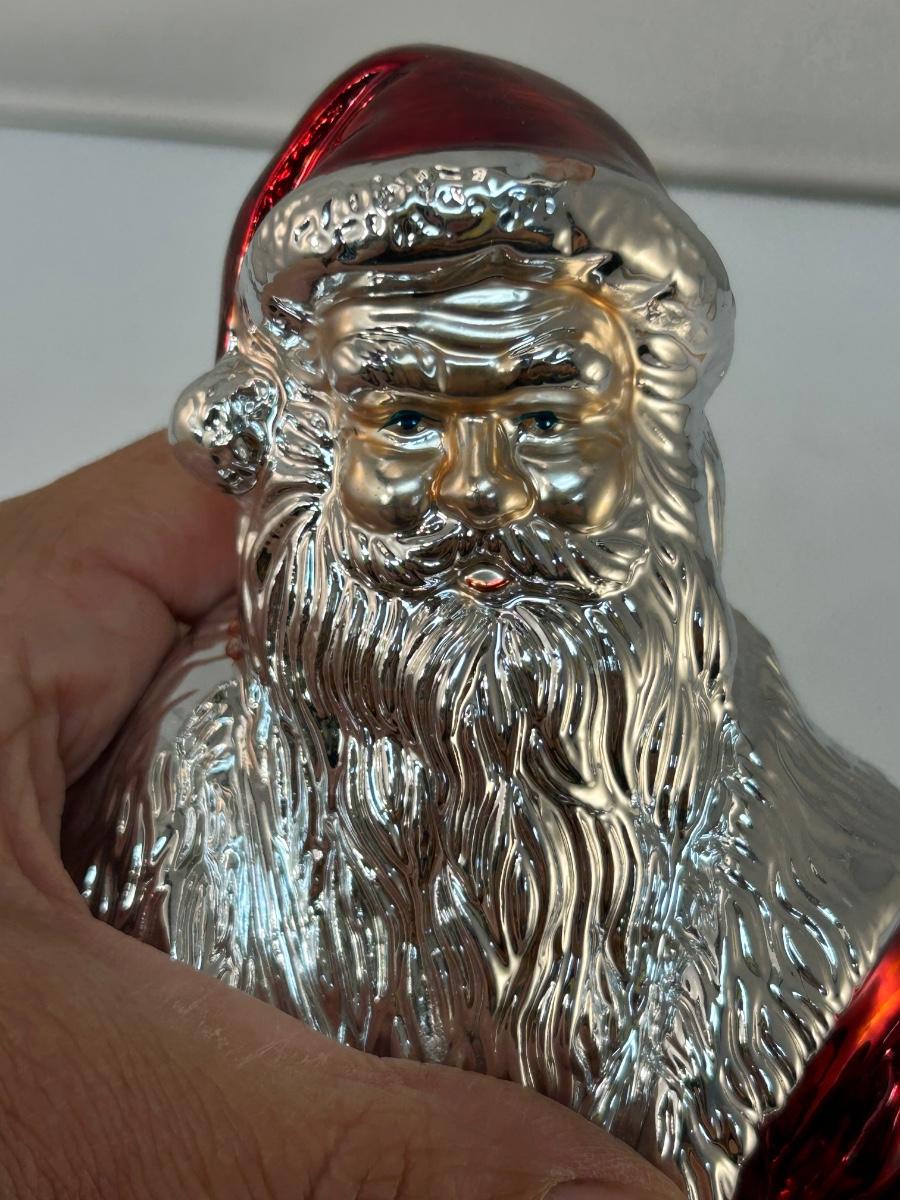 Heavy Metallic Finish Ceramic Santa Claus Figurine Doorstop. In good condition. Heavy like it may be plaster coated metal. or metal coated plater based on the finish. In good condition. It does seem to be hollow.