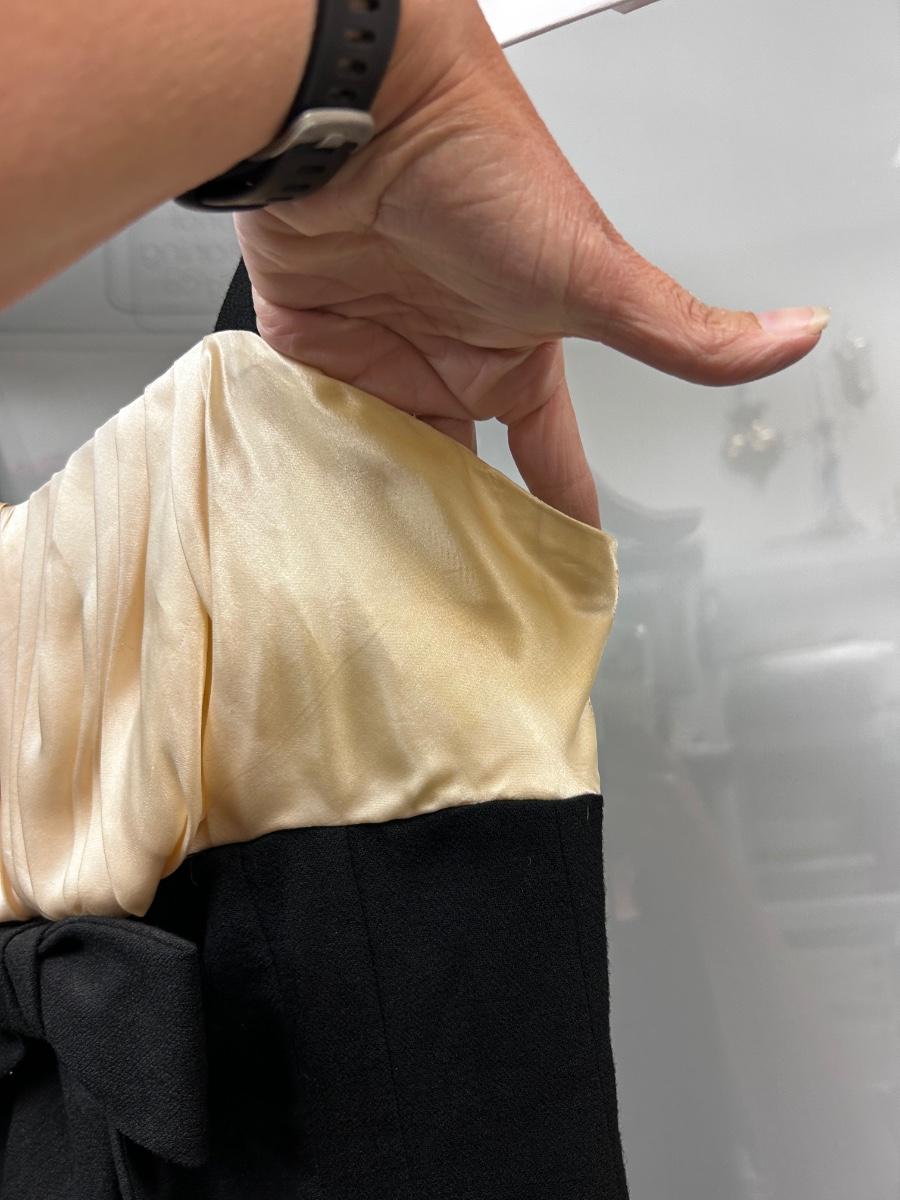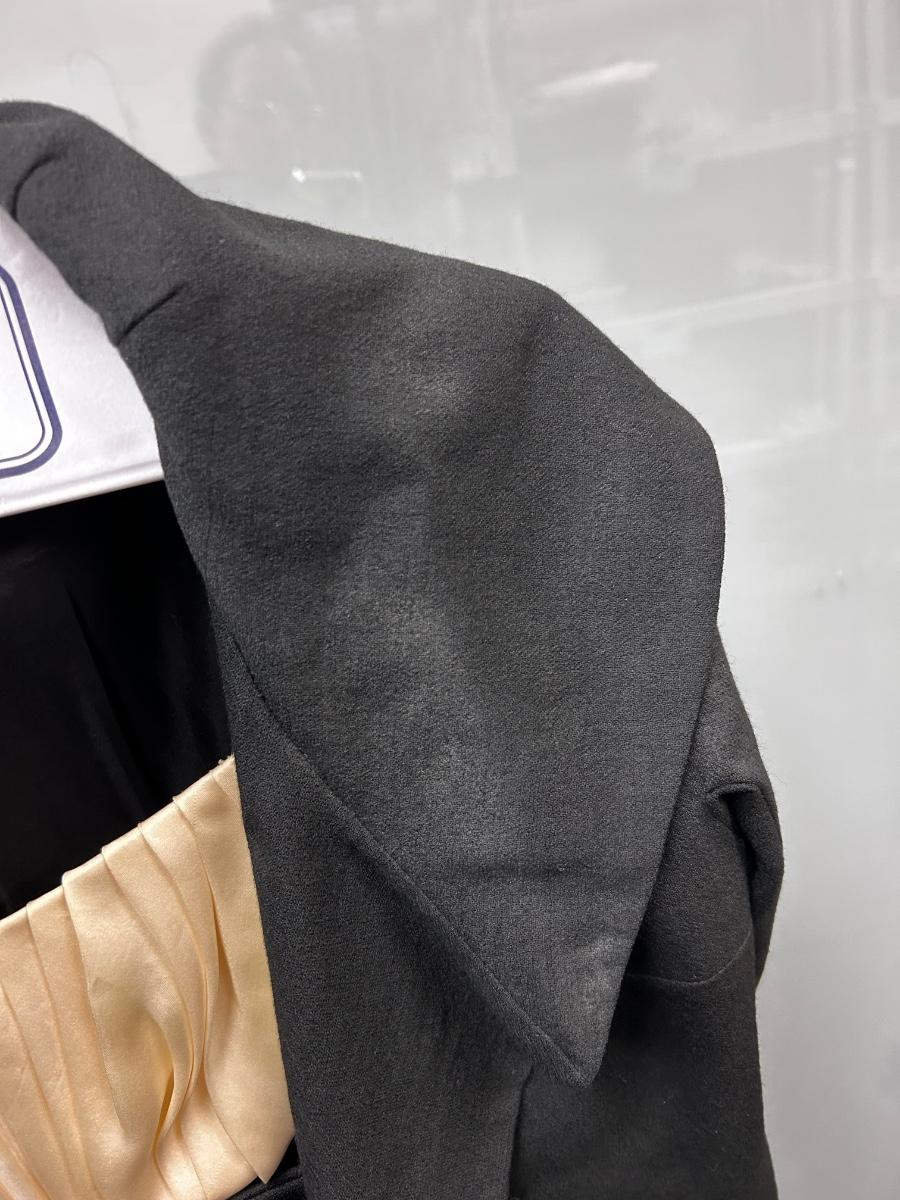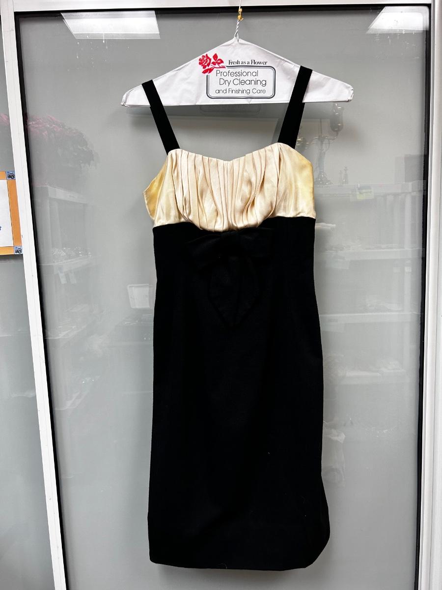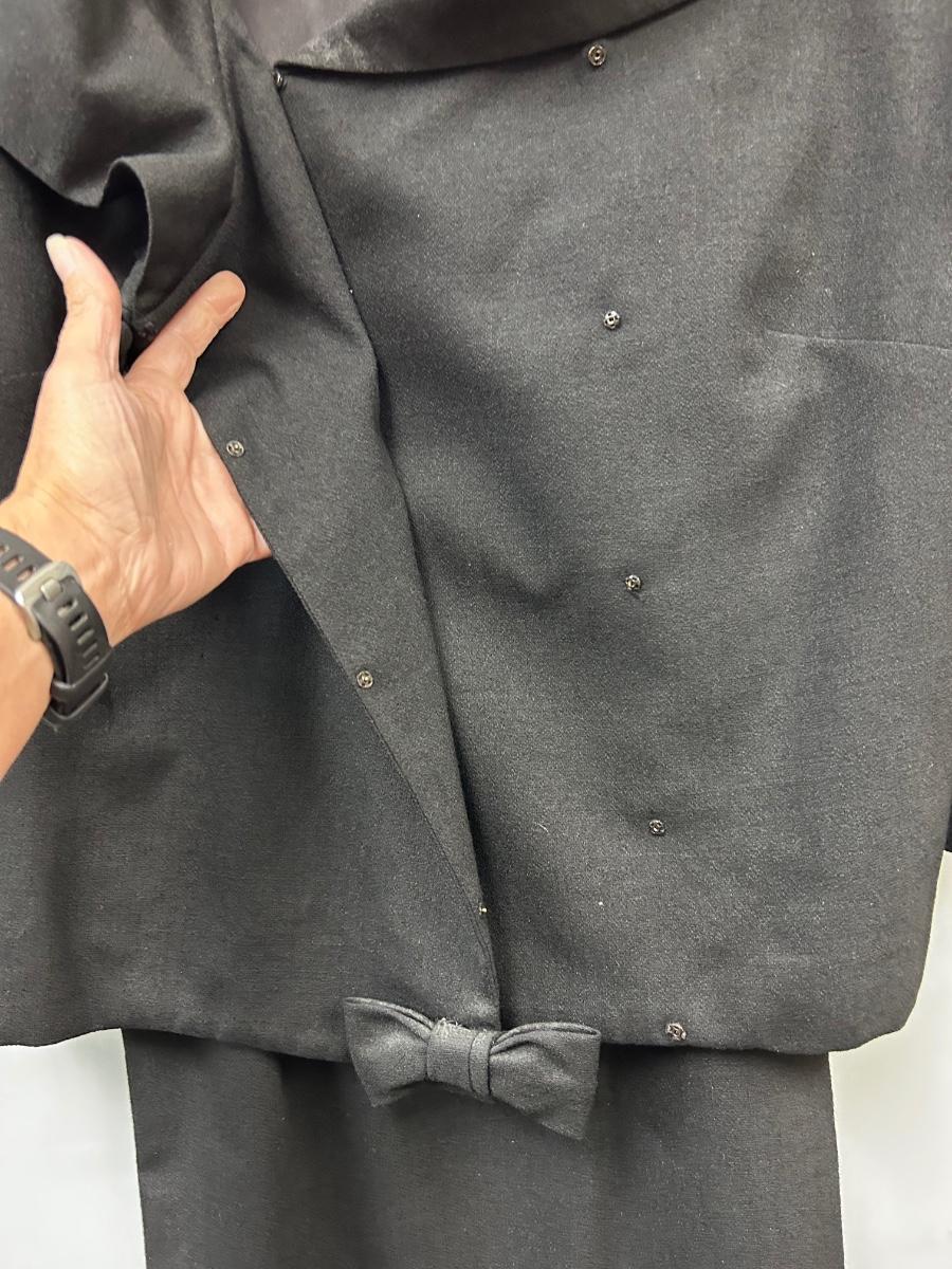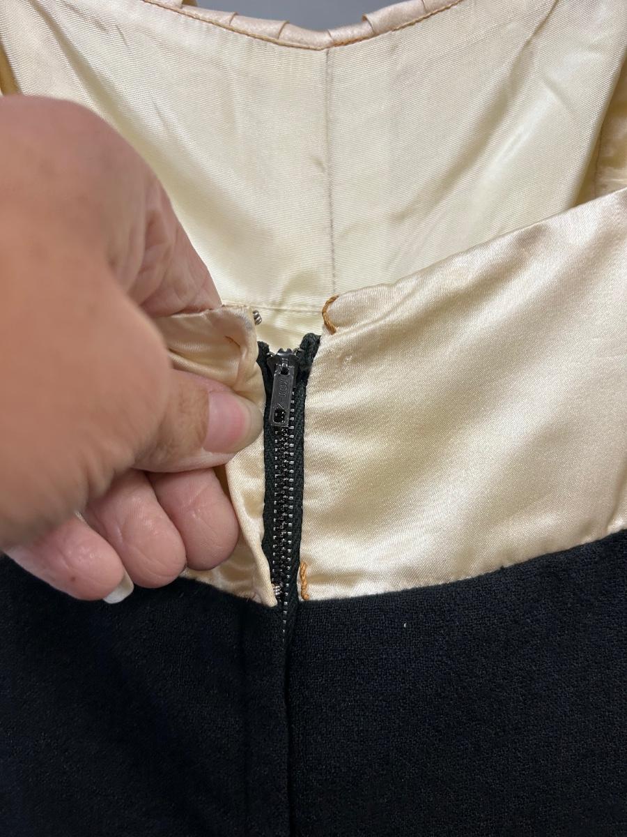 Vintage Homemade Two-Piece Strappy Cocktail Dress with Jacket Coat. In vintage condition. Needs to be cleaned as it is dusty. Size seems to be small; jacket has an odd cut. Some light discoloration on dress at armpits. Hem line of dress needs to be restitched. Overall, both pieces are in good condition with no rips or major stains.