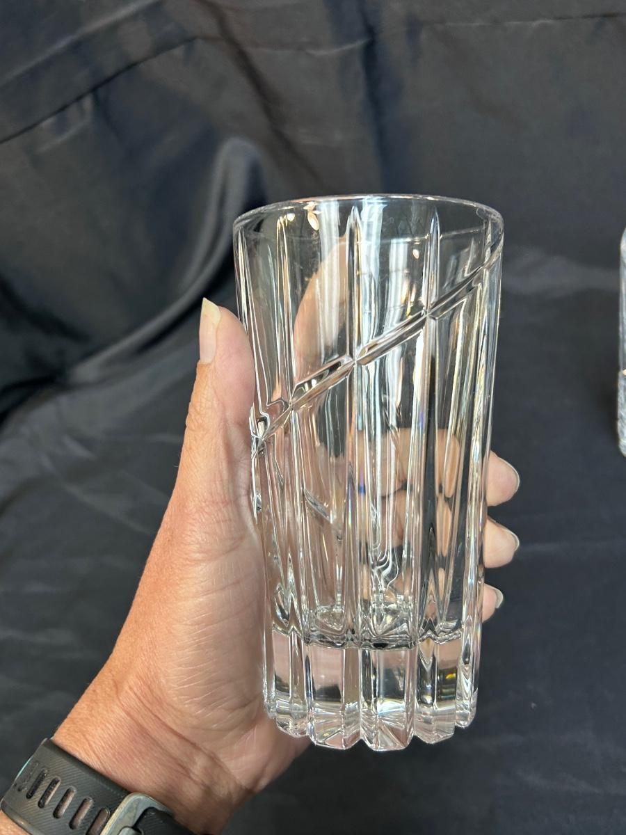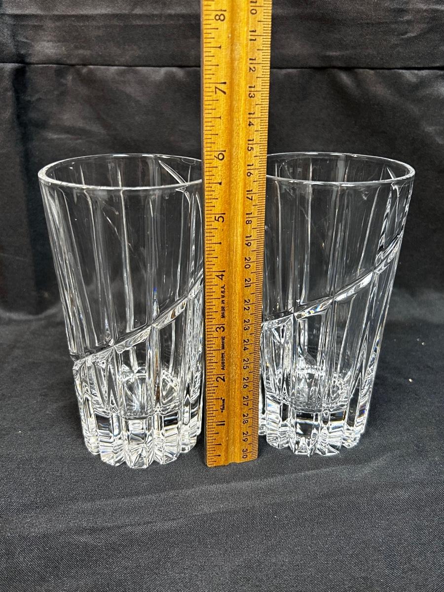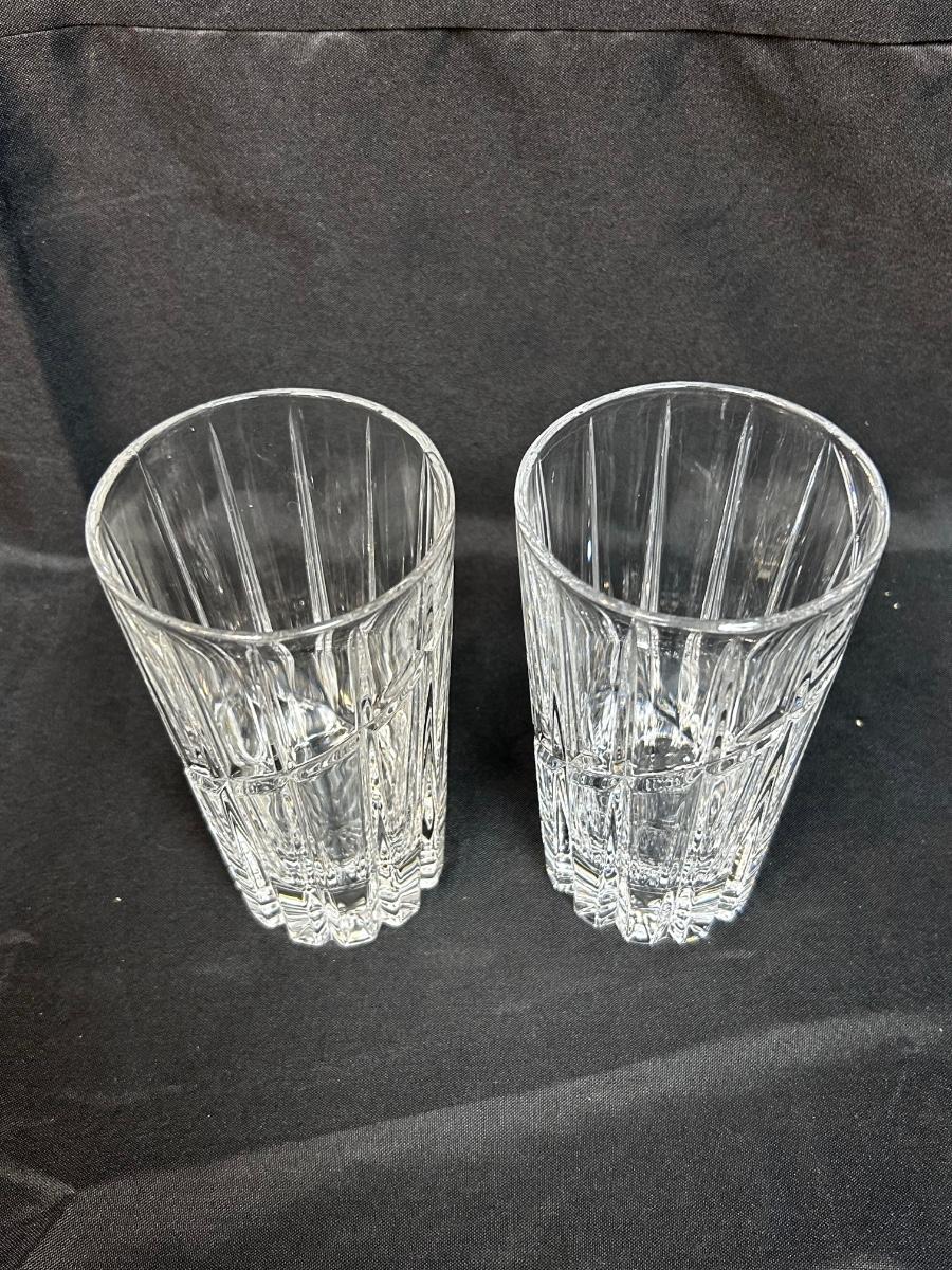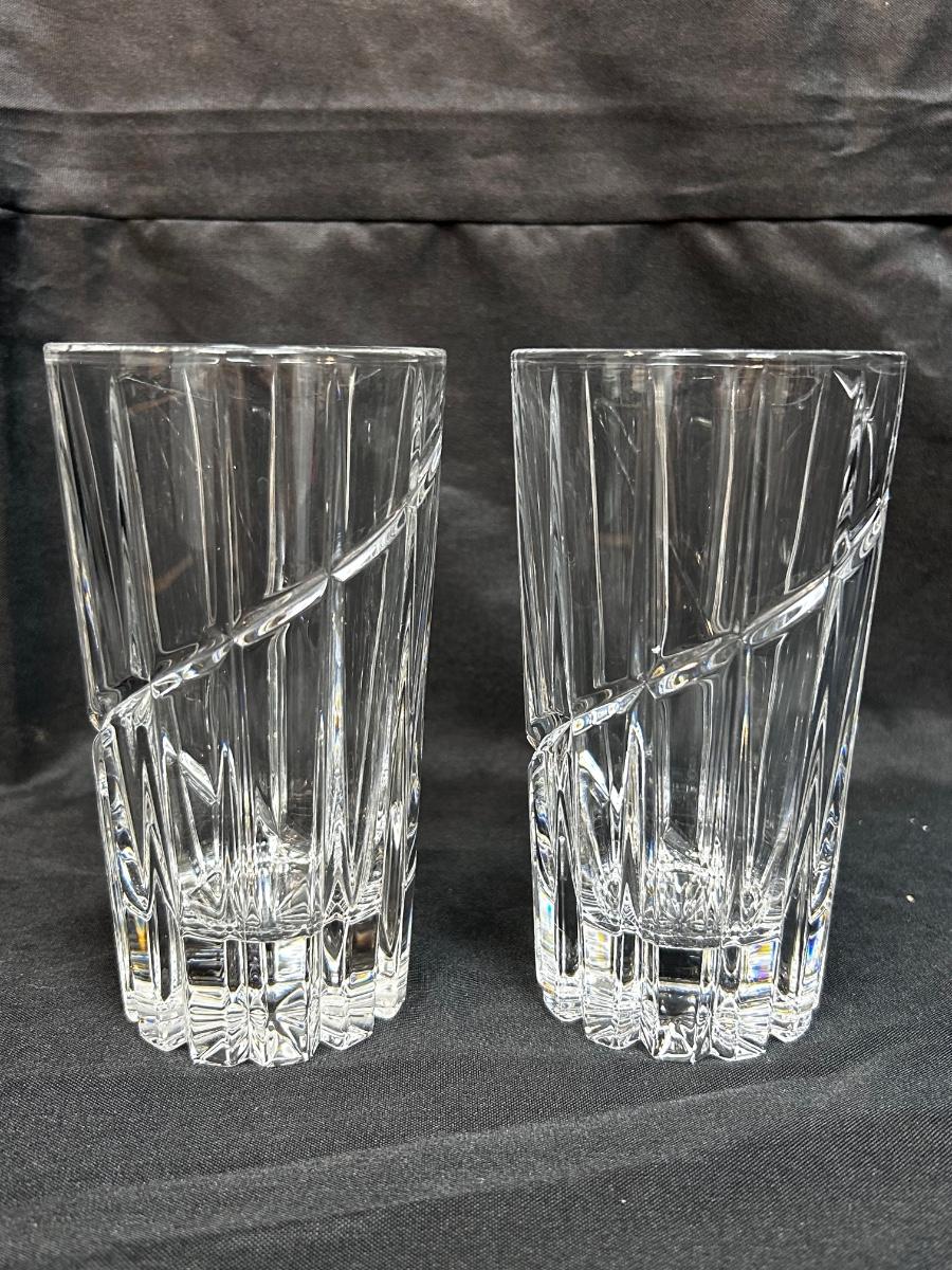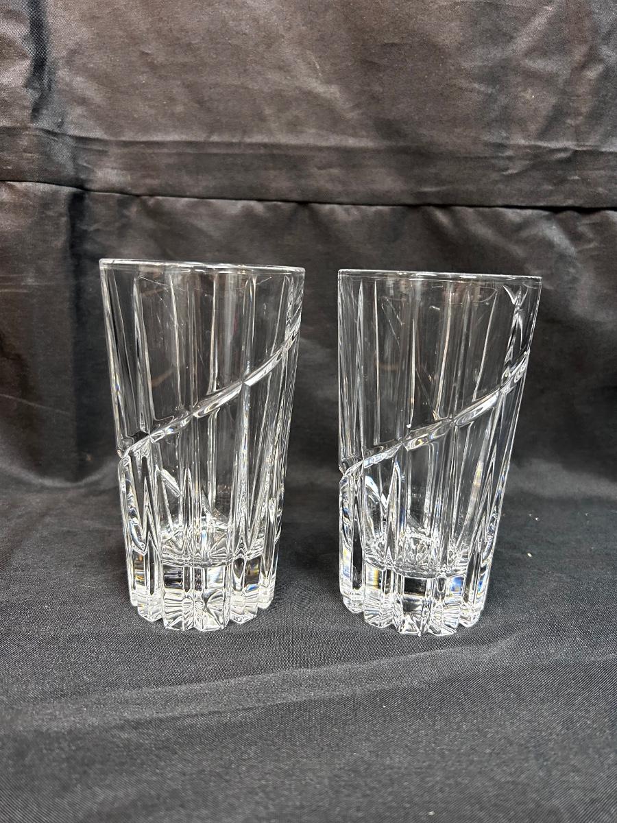 Pair of Mikasa Uptown Swirl Cut Ribbed Drink Glasses High Ball Glass Crystal Barware