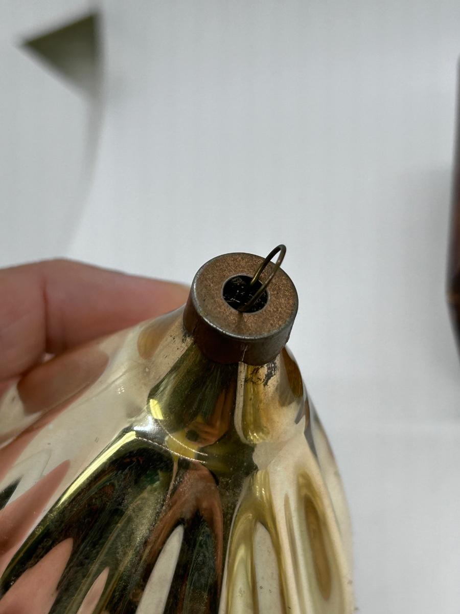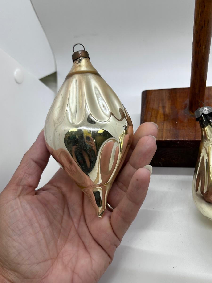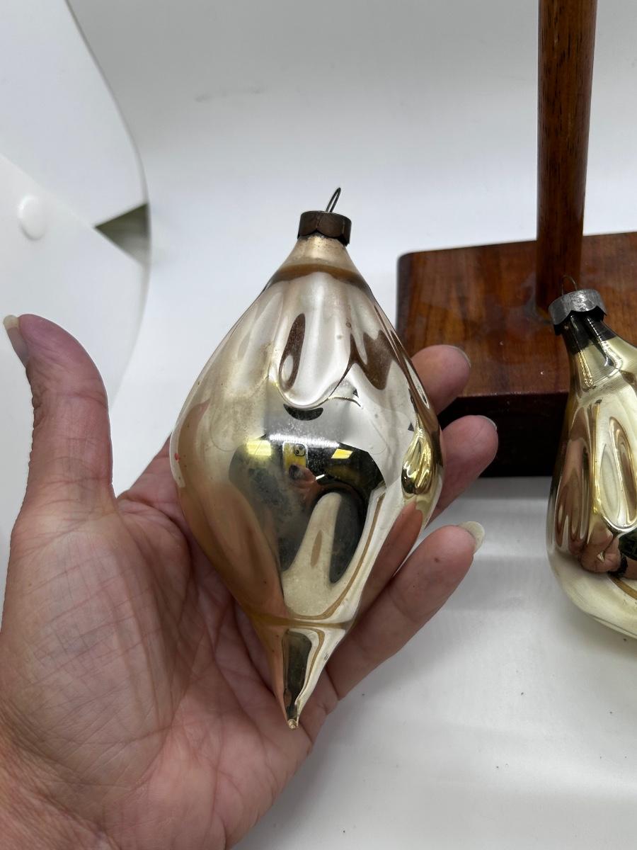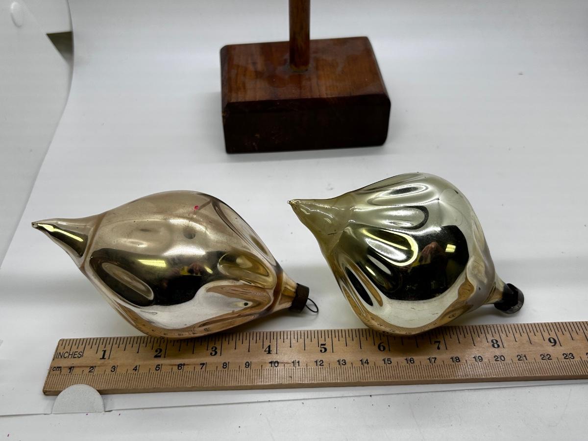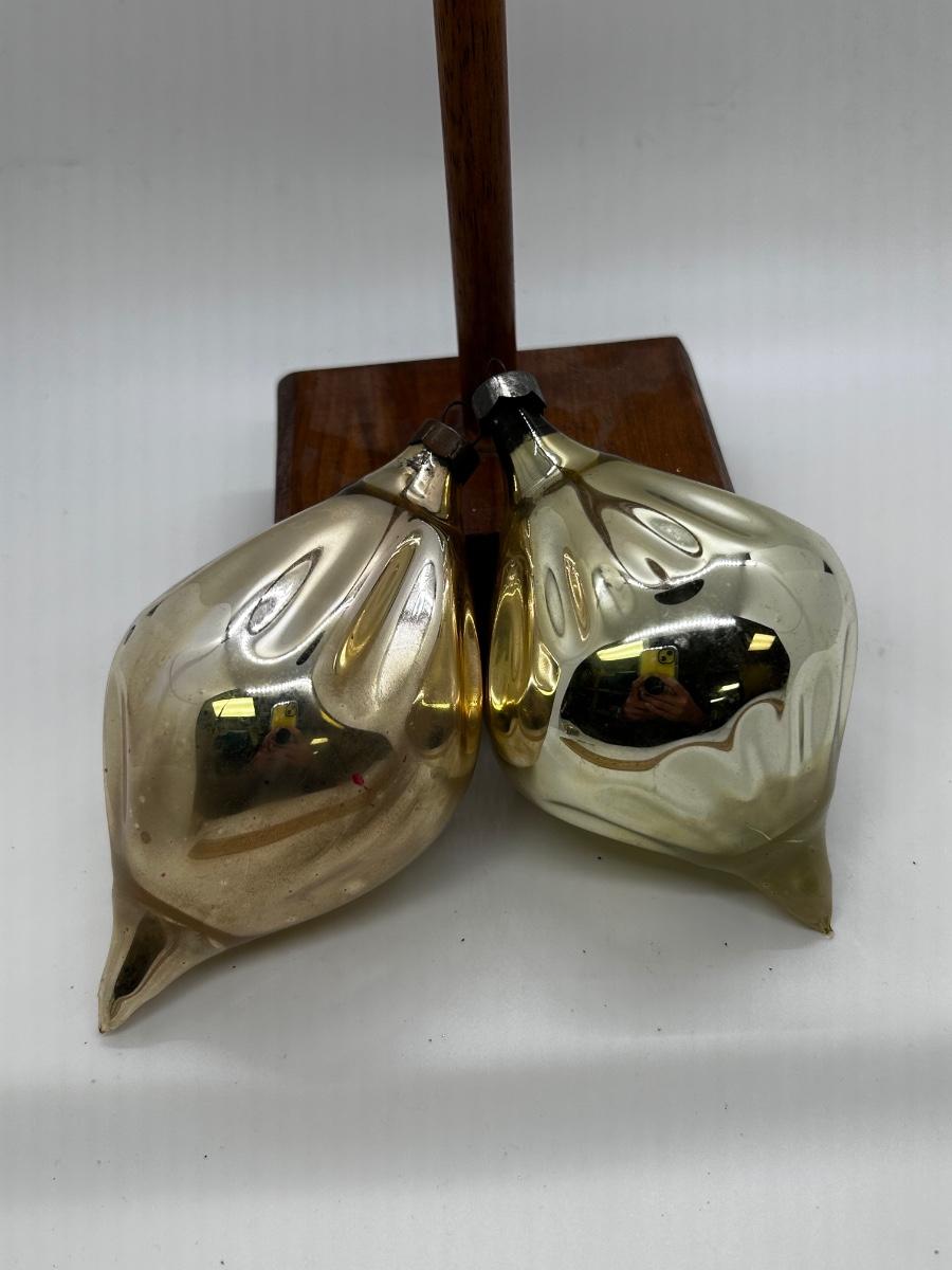 Pair of Vintage Made in USA Blown Glass Metallic Finish Christmas Holiday Tree Ornaments