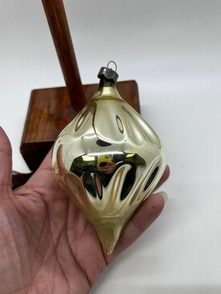 Pair of Vintage Made in USA Blown Glass Metallic Finish Christmas Holiday Tree Ornaments. In good vintage condition. About 5" size.