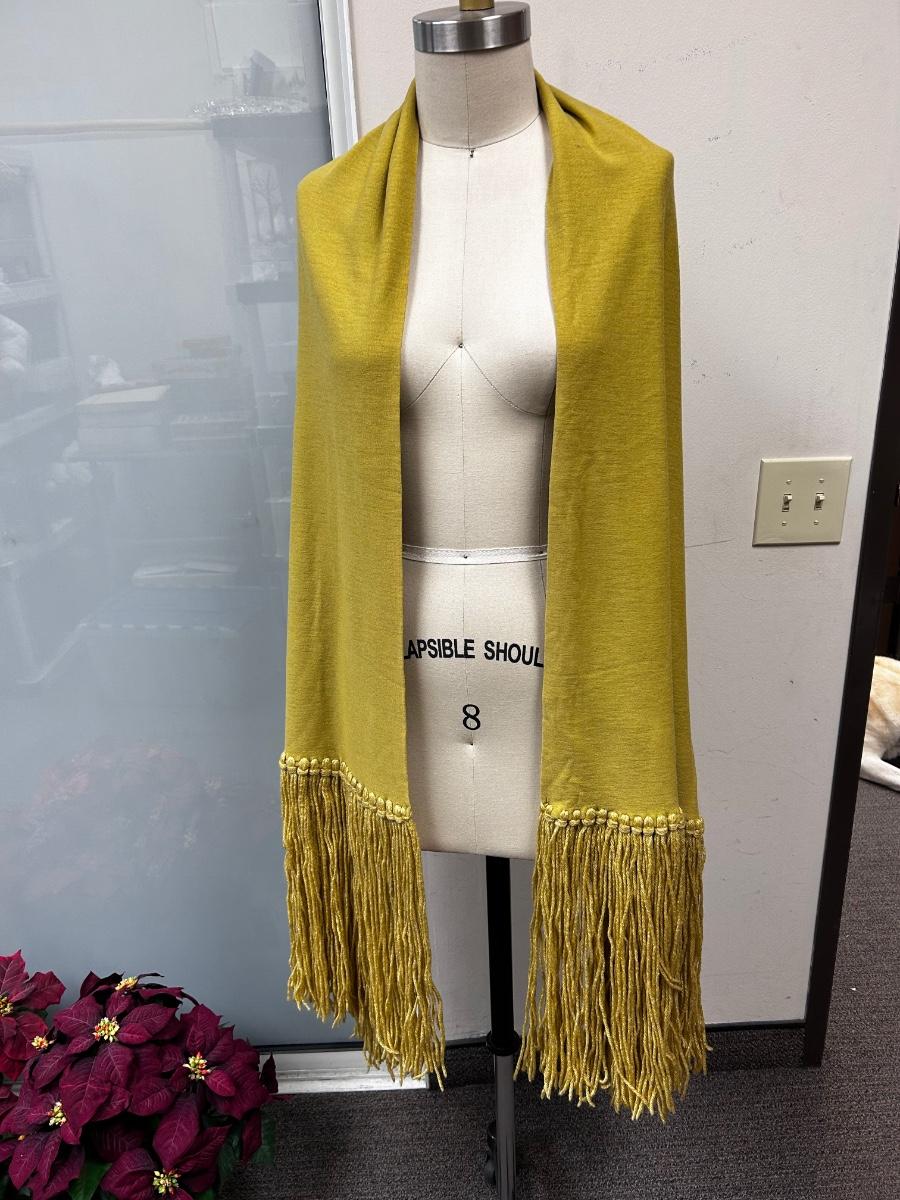 Pair of Vintage Yarn Fringed Knit Shawls Shoulder Wraps Chartreuse Gold & Purple