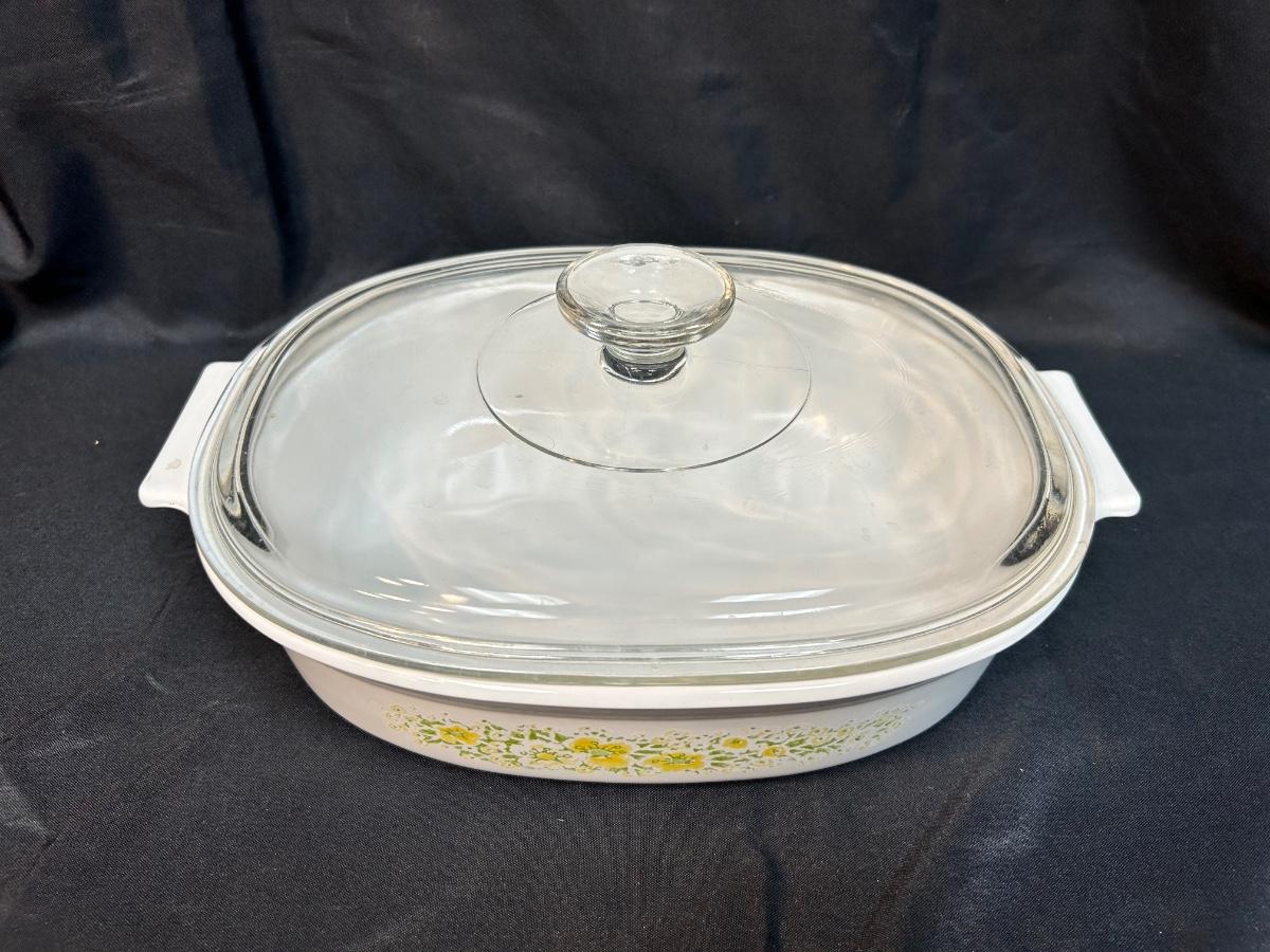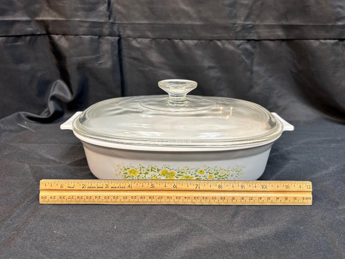 Vintage Retro Corning Ware Lidded Oblong Casserole Baking Dish 1.5qt April Yellow and White Flowers