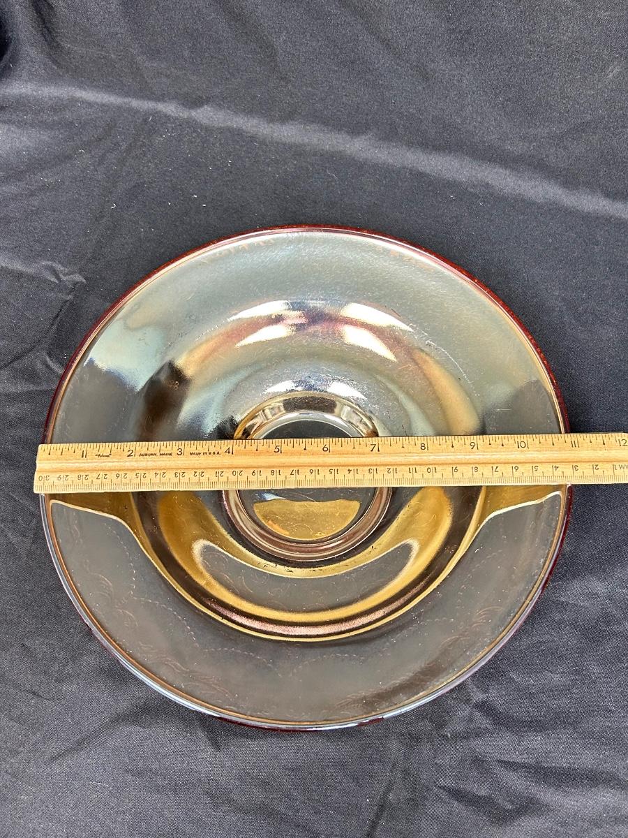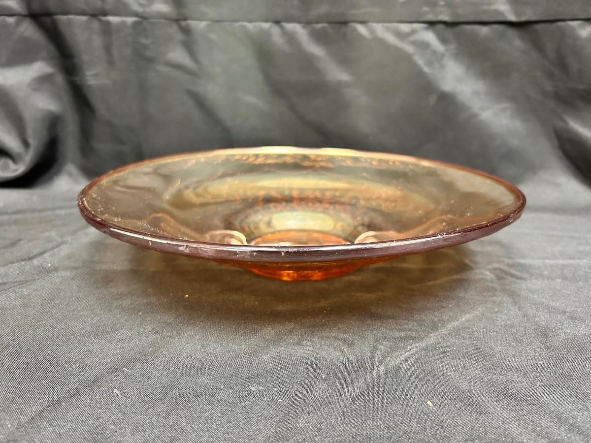 Vintage Marigold Iridescent Luster Carnival Depression Glass Shallow Console Bowl