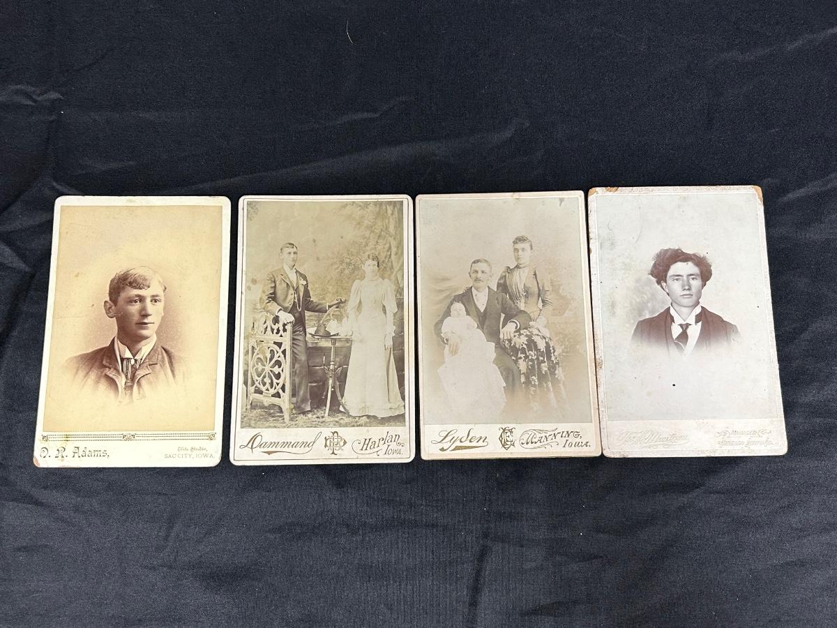Set of Four Antique Sepia B&W Cabinet Card Photographs Photos