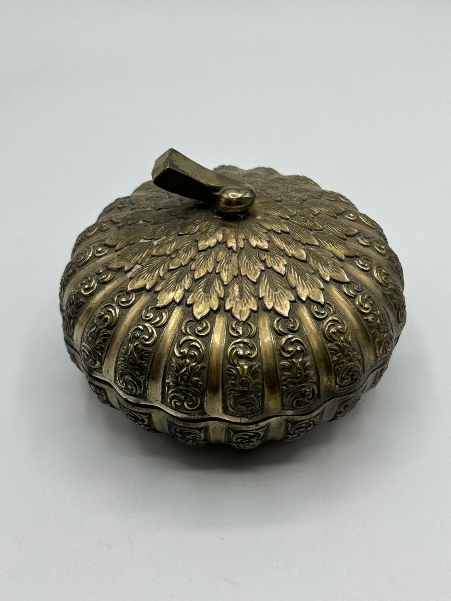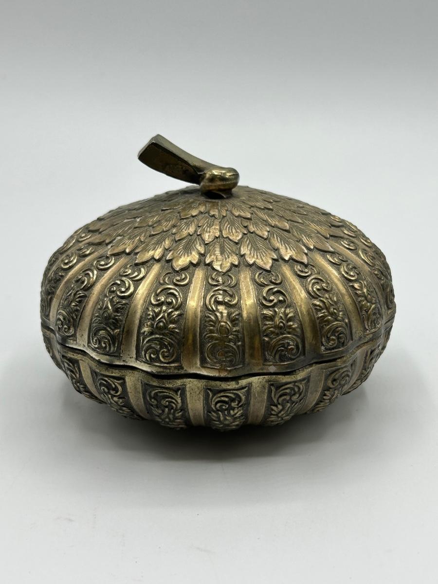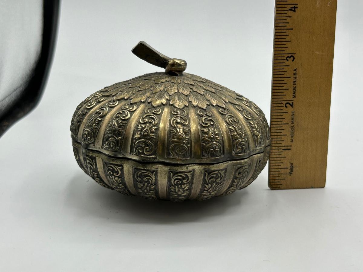 Art Deco Nouveau Regency Gourd Squash Shaped Metal Trinket Powder Dish