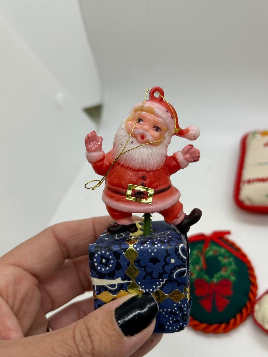 Mixed Lot of Christmas Holiday Tree Ornaments Celluloid Santa and Plush Decorations