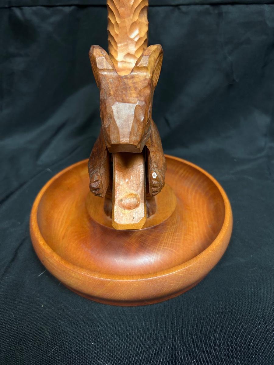 Vintage Made in Germany Carved Wood Nut Dish with Squirrel Shaped Nutcracker