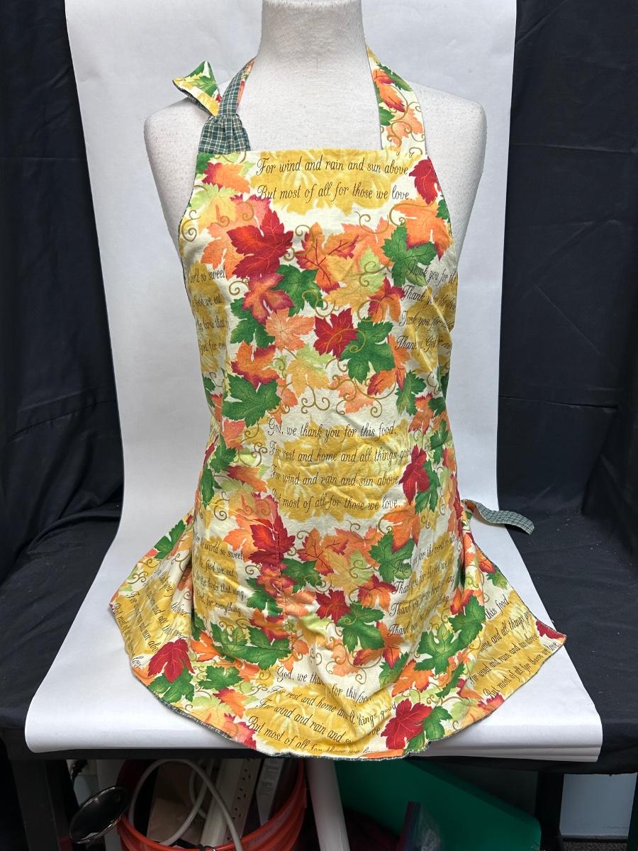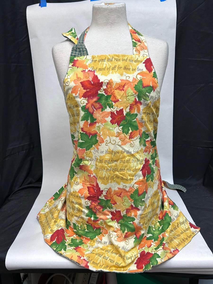 Reversible Fall Autumn Thanksgiving Full Apron Handmade. Good previously worn condition.