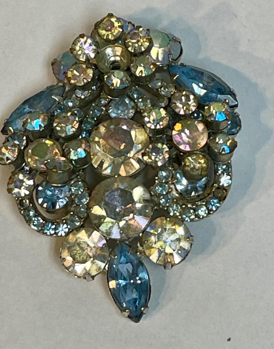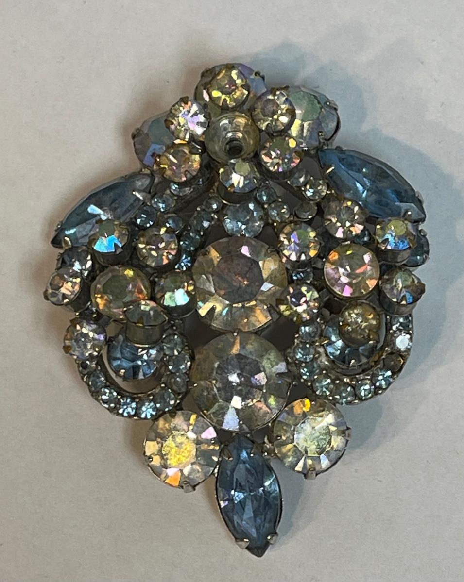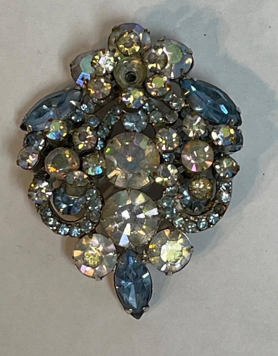 Vintage Costume Jewelry Brooch Pin with Multicolor Stones