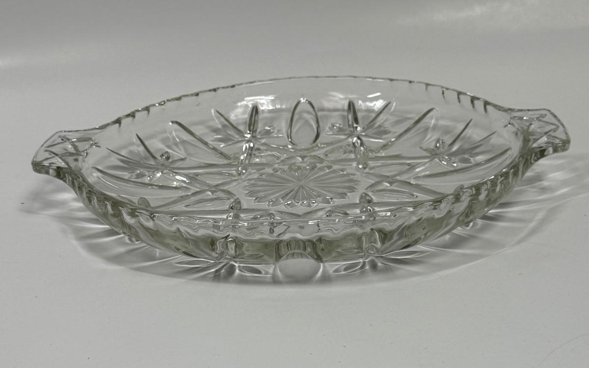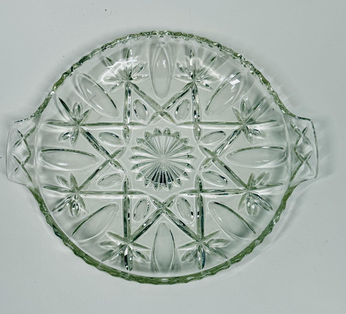 Vintage Anchor Hocking Pressed Glass Cross and Olive Serving Platter With Handles