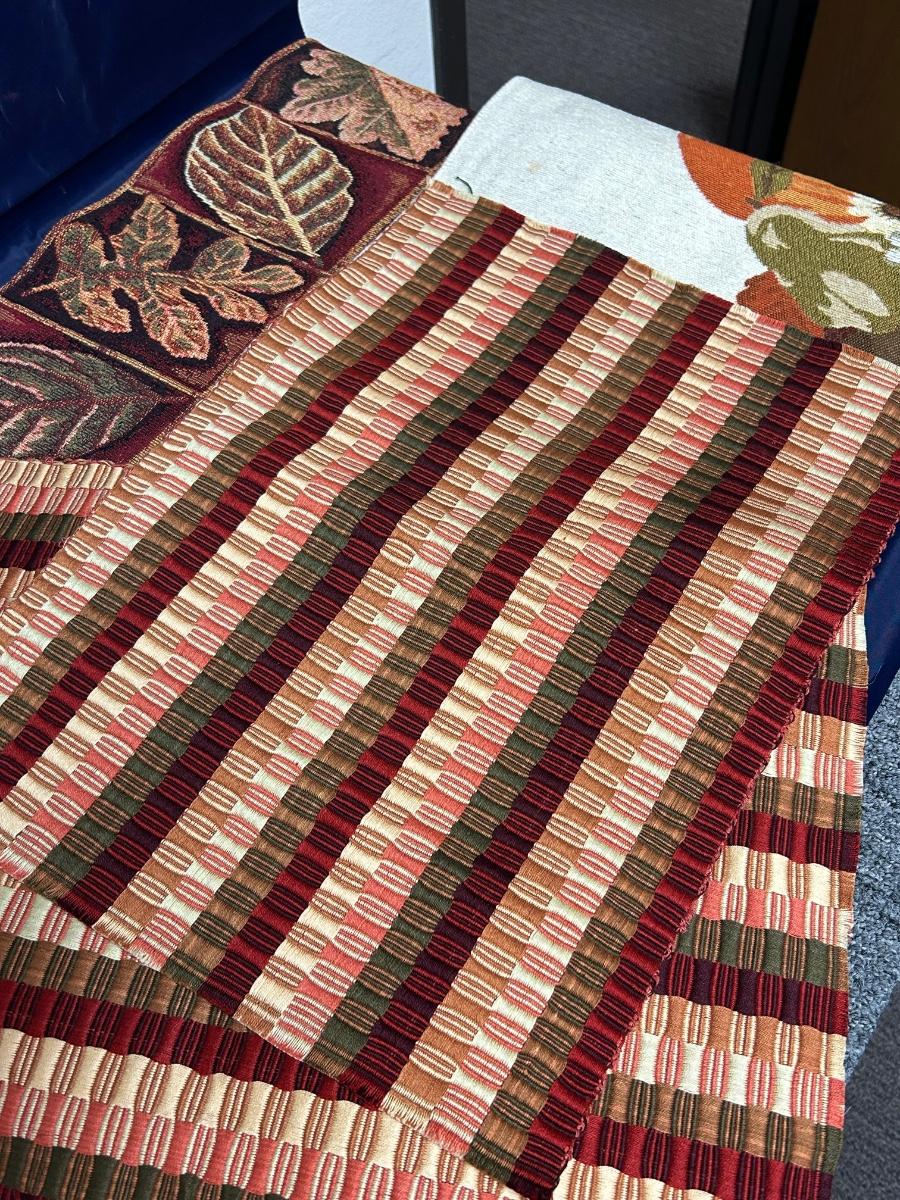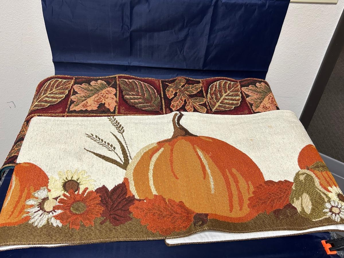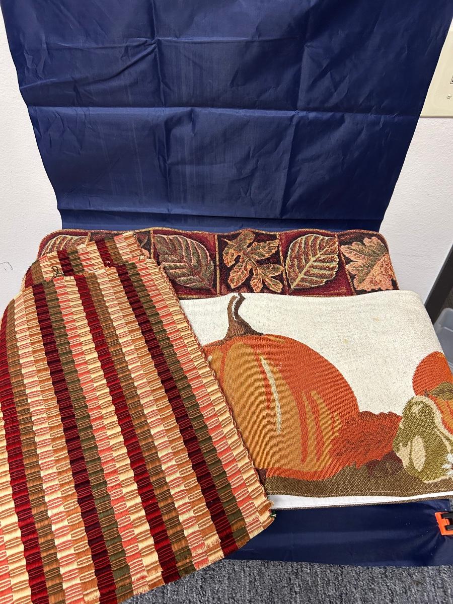 Pair of Fall Autumn Table Runners and Matching Warm Tone Placemats. In good condition. Placemats are standard size, runners are about 4'.