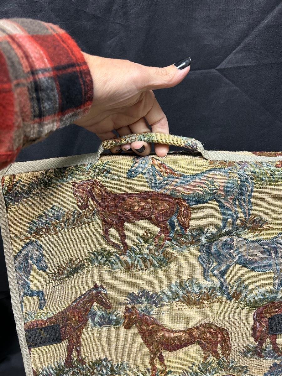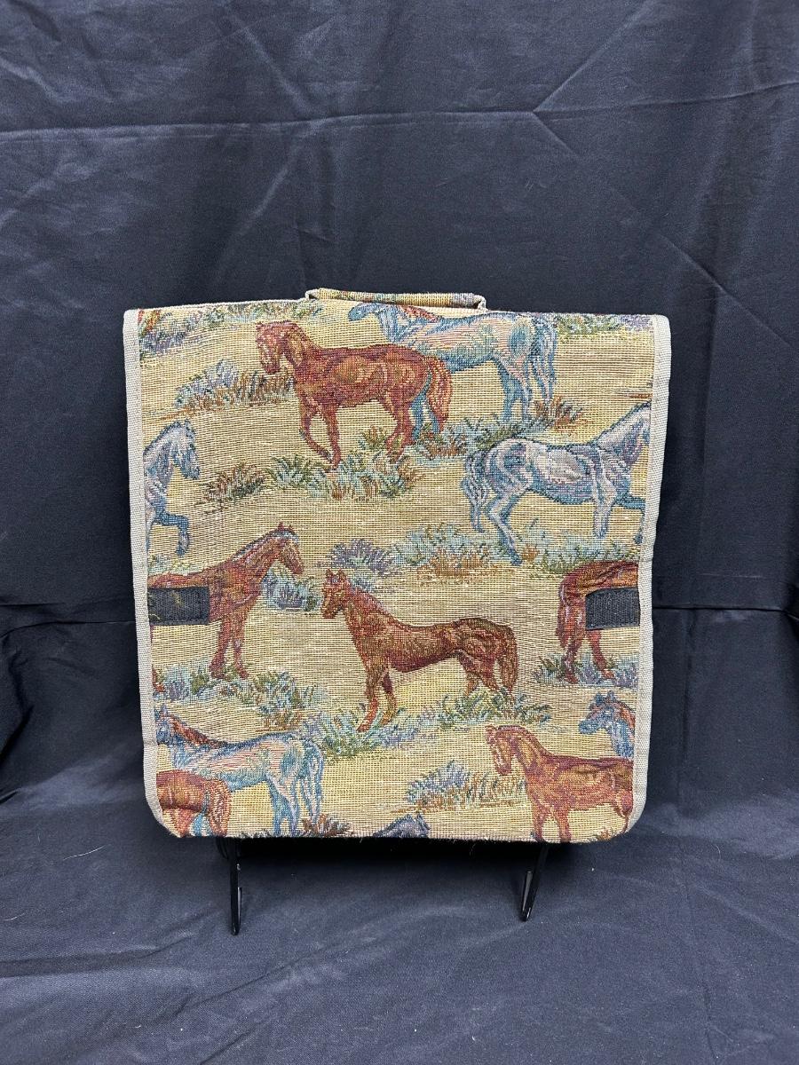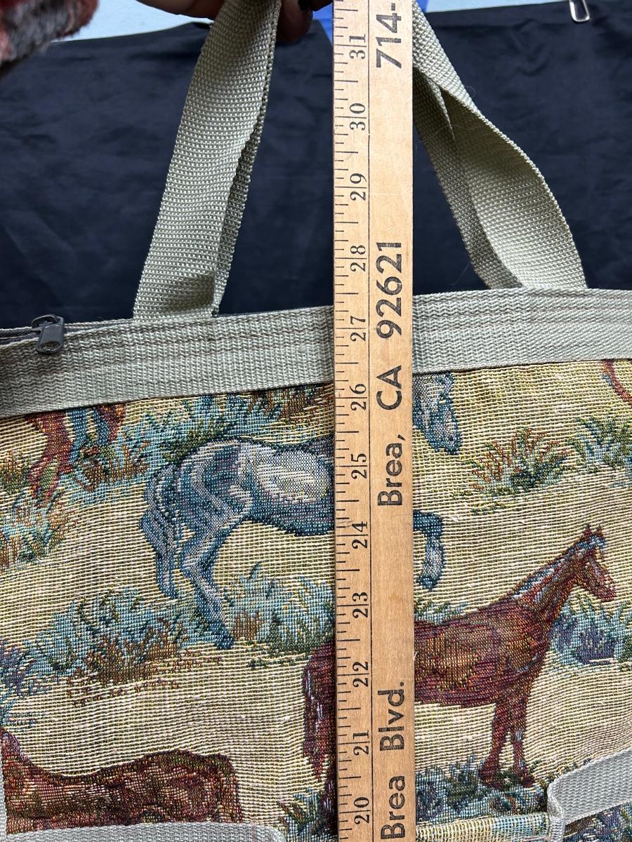 Horse Equestrian Themed Tapestry Rolling Bag. Folds up for storage. Zipper close. In good used condition.