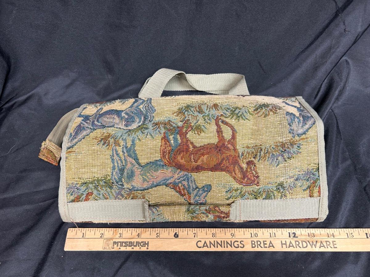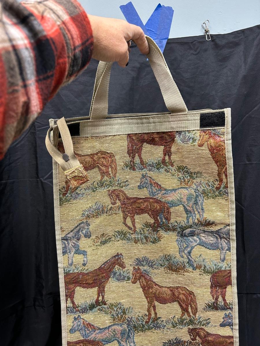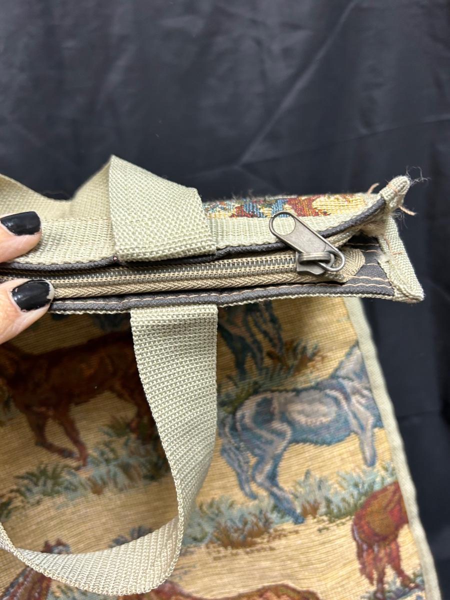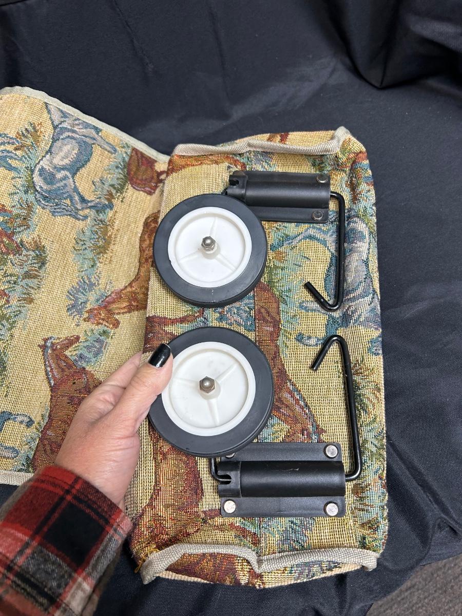 Horse Equestrian Themed Tapestry Rolling Bag. Folds up for storage. Zipper close. In good used condition.