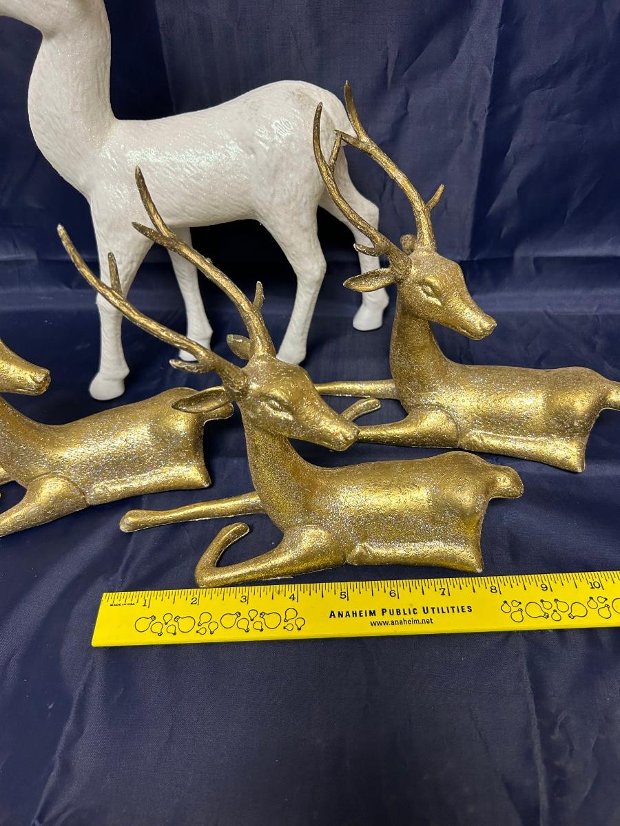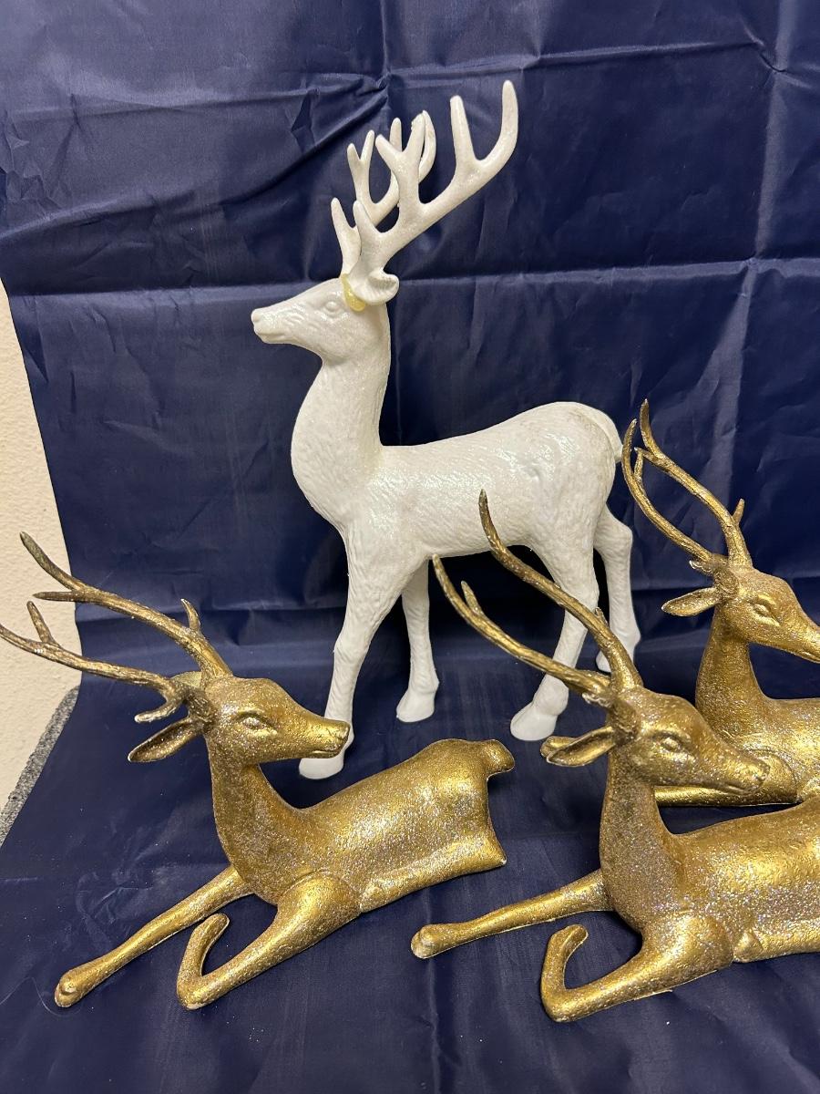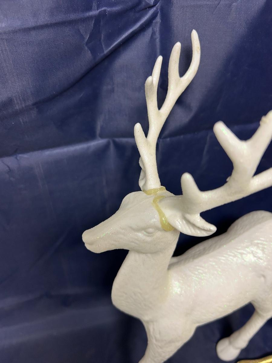 Plastic White and Gold Holiday Seasonal Deer Figurines