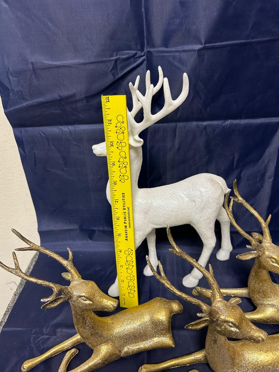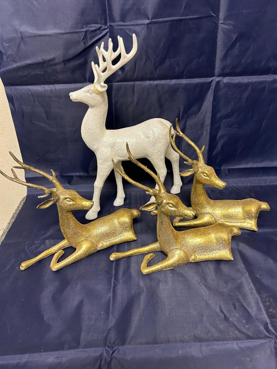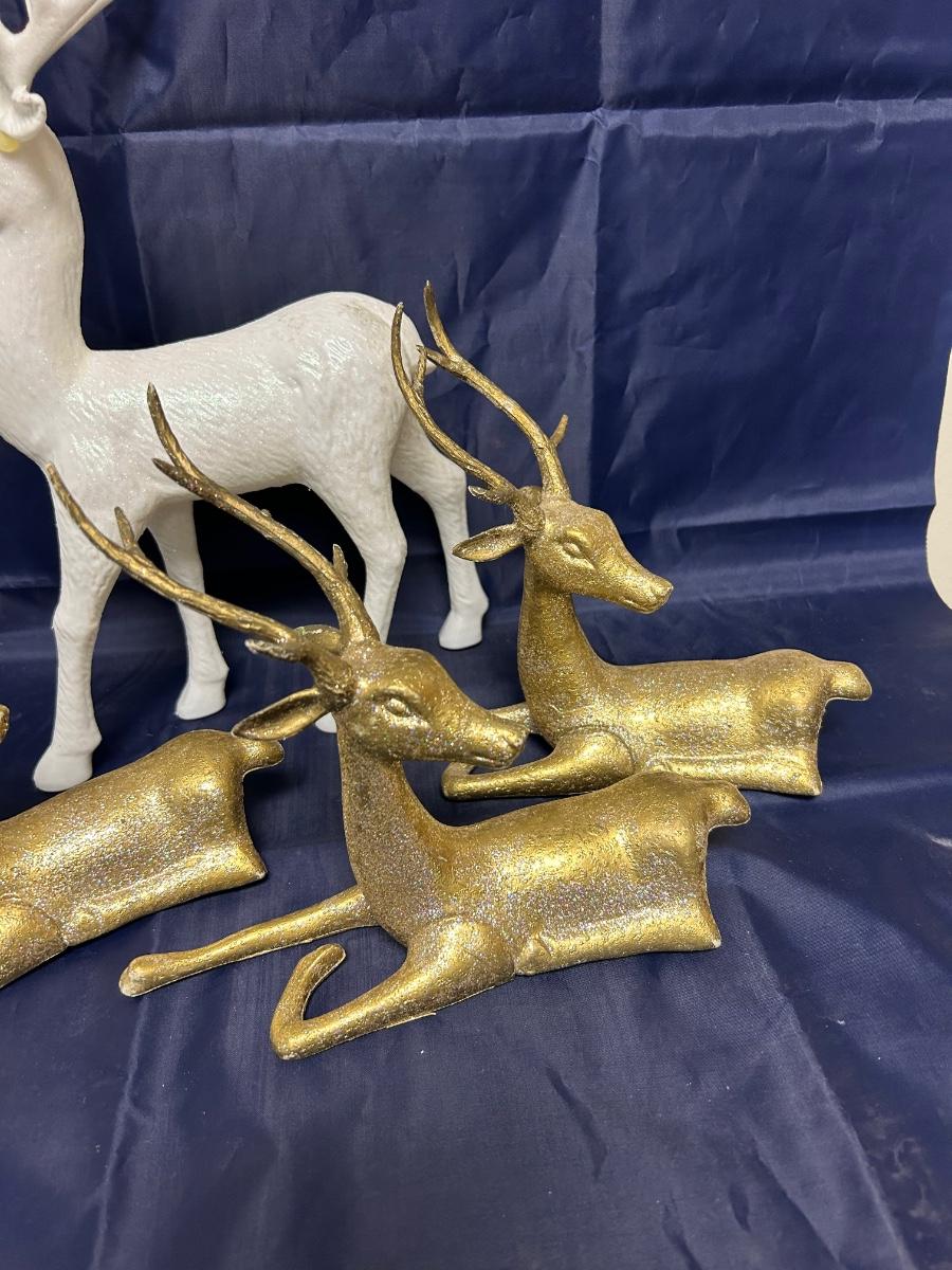 Plastic White and Gold Holiday Seasonal Deer Figurines