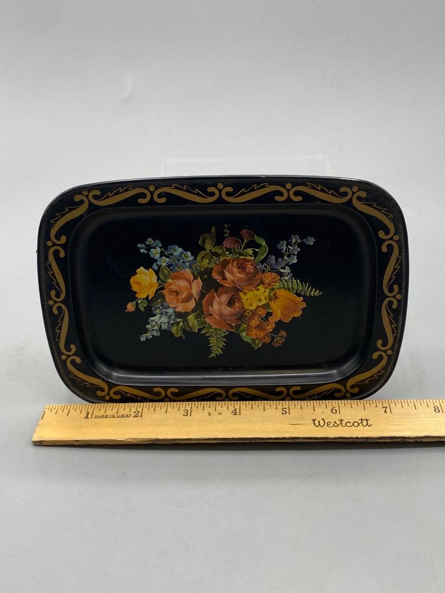 Small Vintage Floral Bouquet Print Trinket Tray Change Dish. Flower pattern is printed not painted. In good vintage condition.