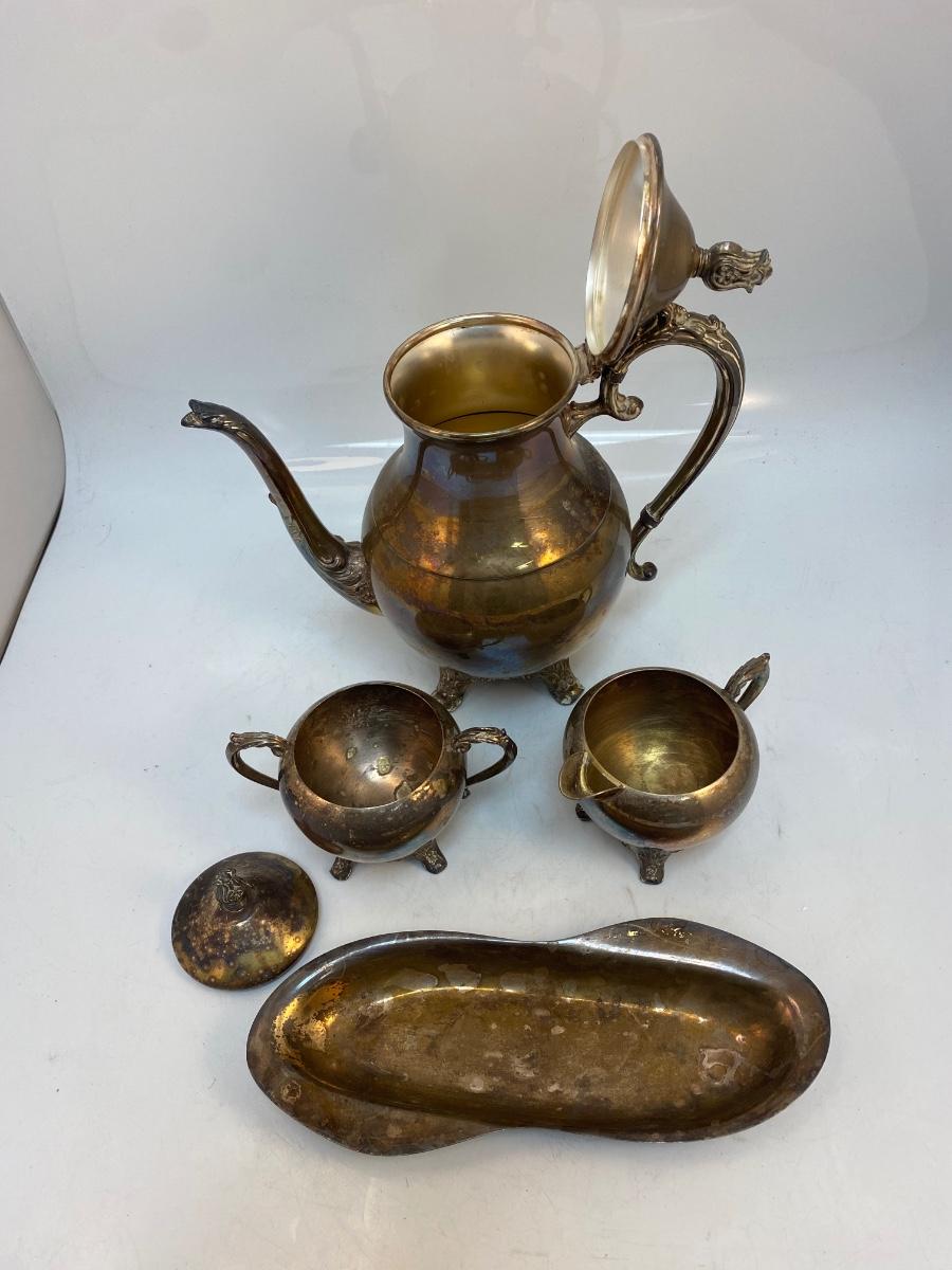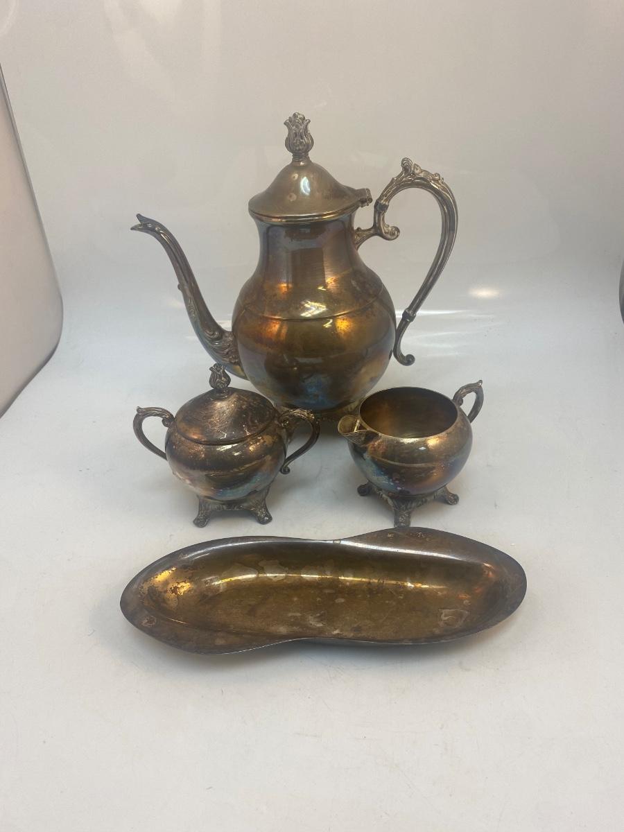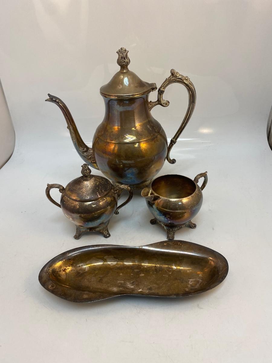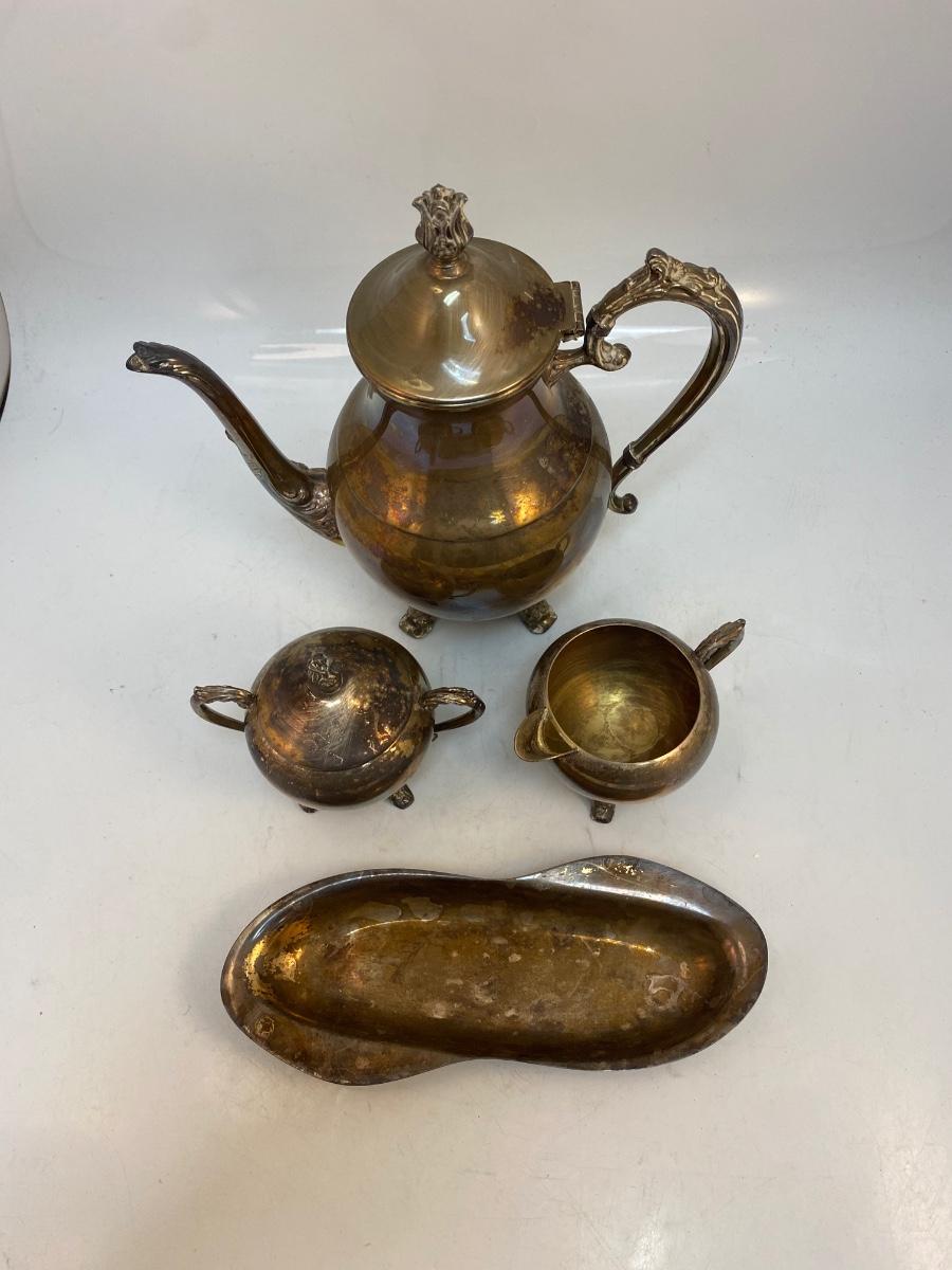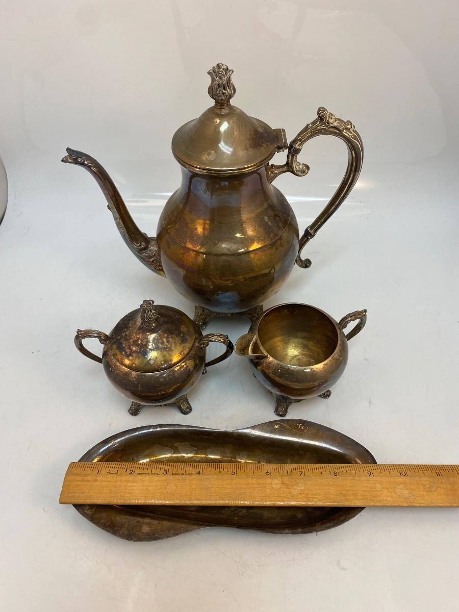 Vintage Silver Plate Teapot Lidded Sugar Creamer Spoon Rest Dish