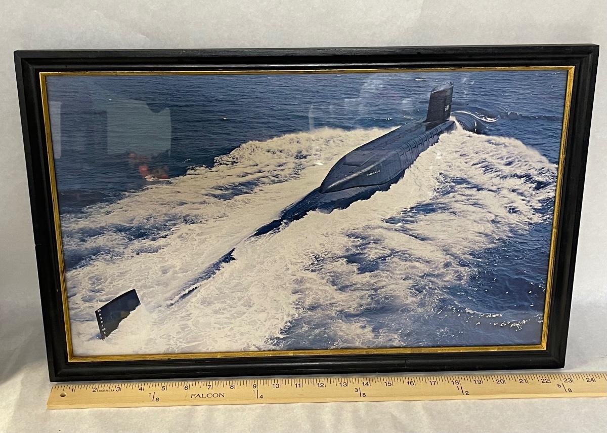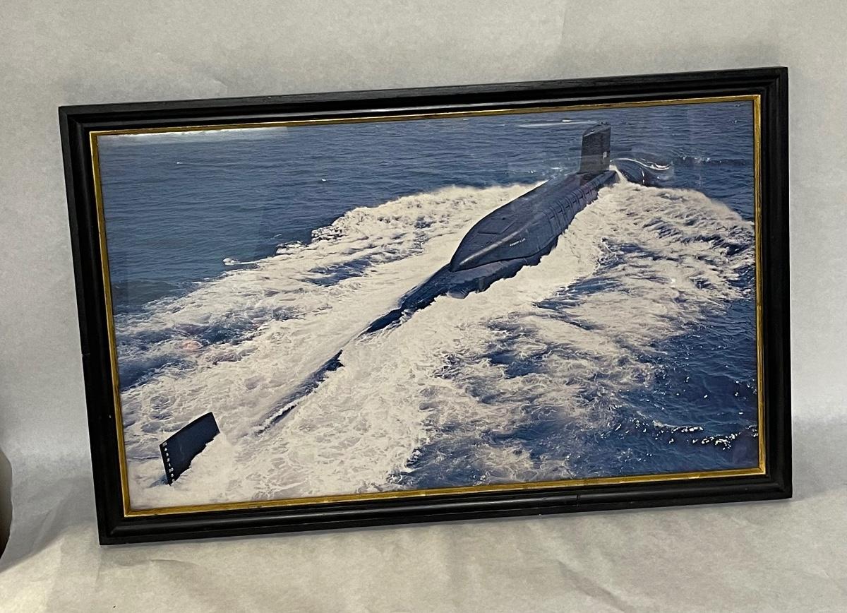 Great full-color picture, you can see the boat's name stenciled on the side and just make out the number 601 on the conning tower. Approx. 15" x 23". This submarine was in service as a ballistic missile boat from 1960-1983, and was scrapped in 1991.