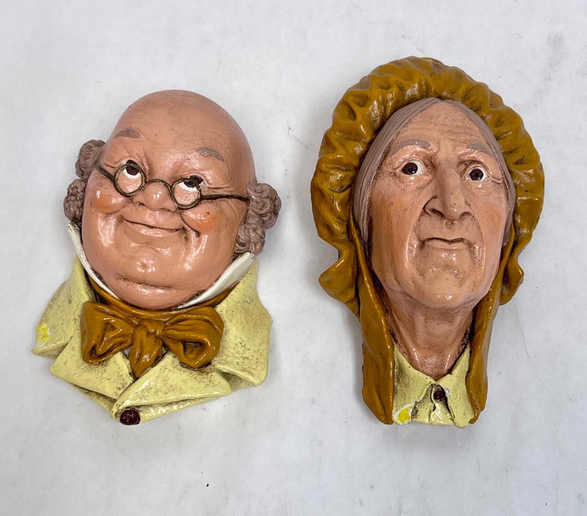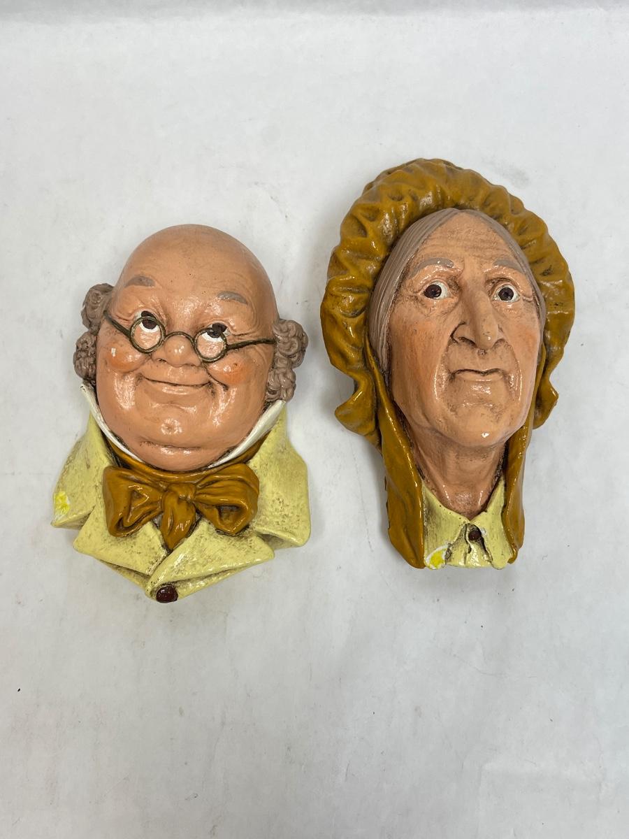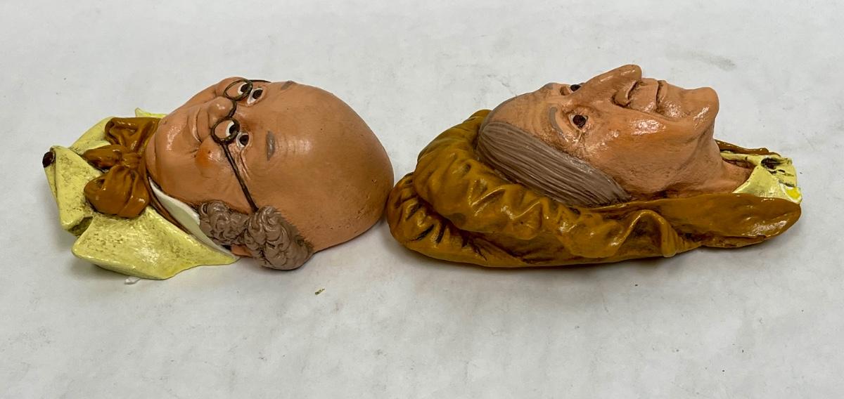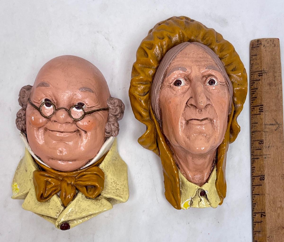 Blossoms Chalkware Head Sculpture painted wall hanging