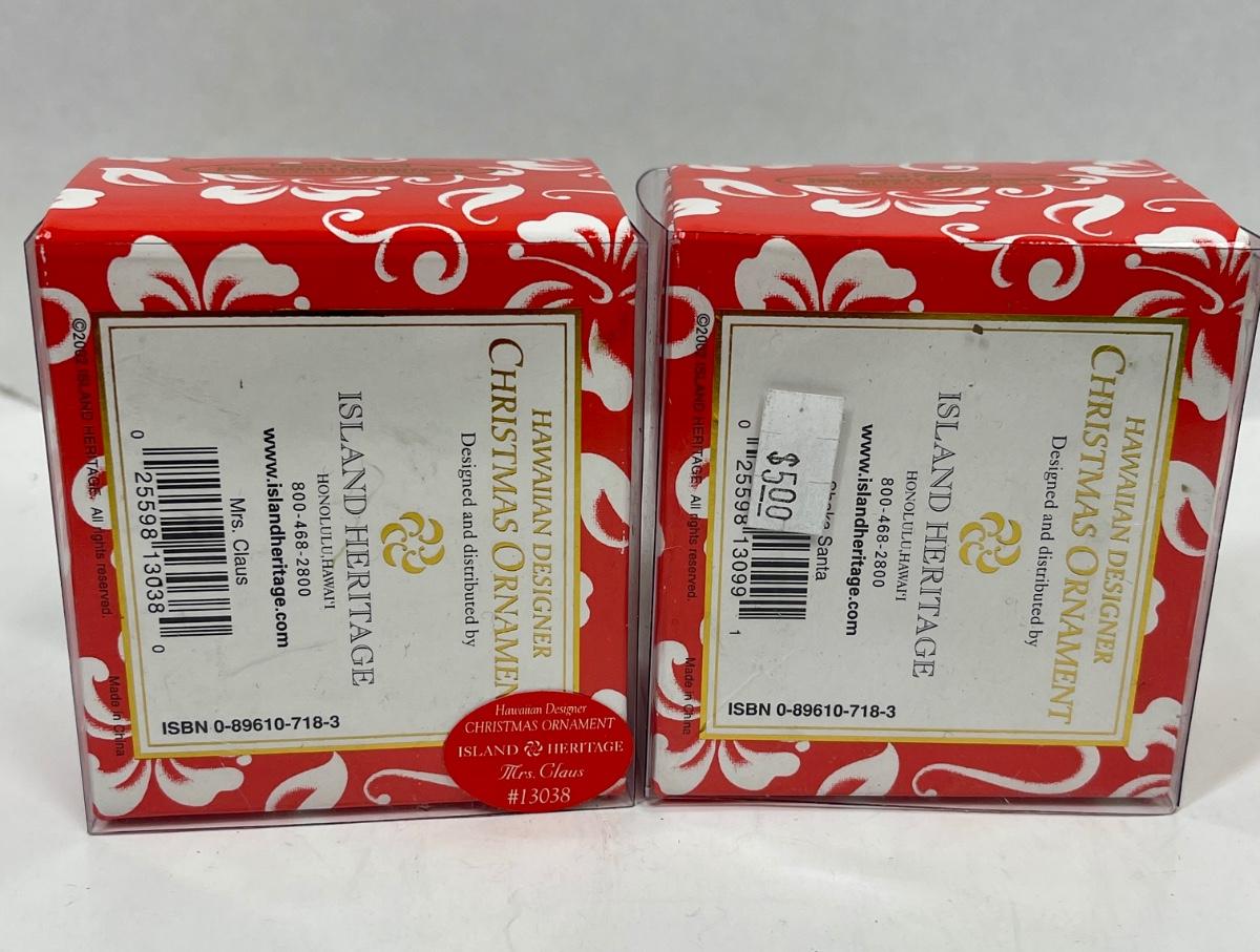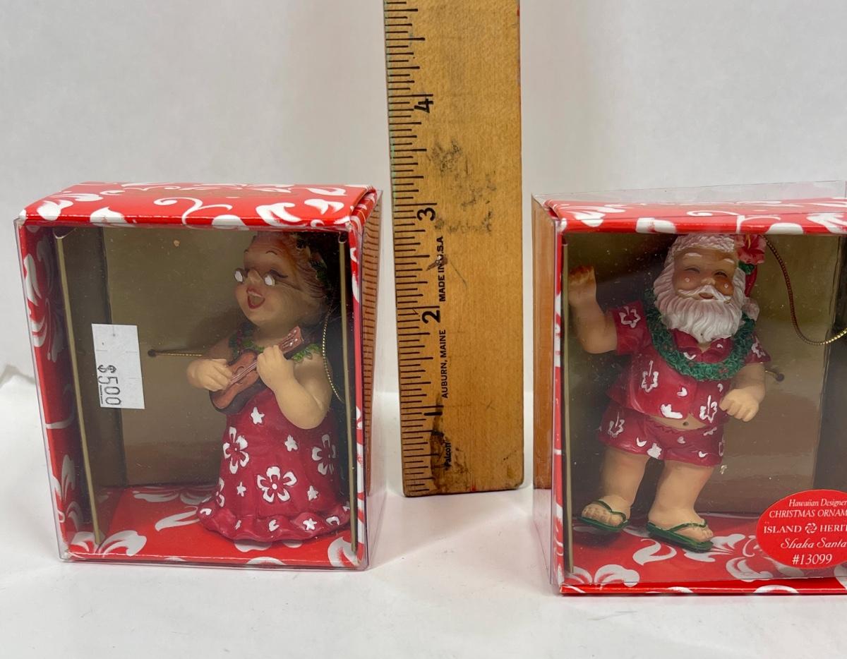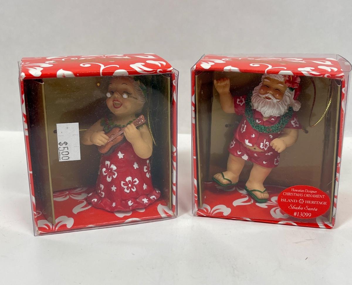 Island Heritage Hawaiian Designer Christmas Ornament Mr & Mrs Santa Claus on Surfboards