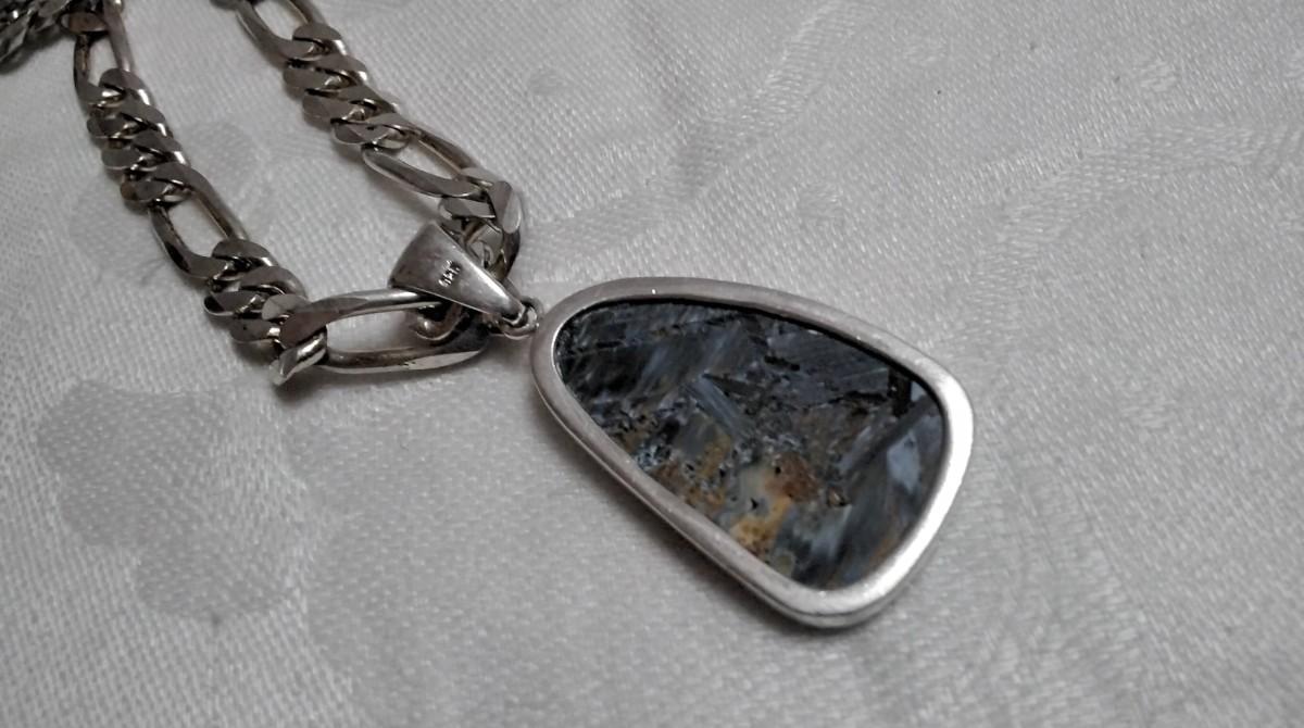 Rare Pietersite With Rare Blue Chariote Accent 20" Italian 925 Necklace