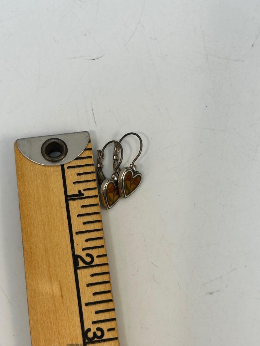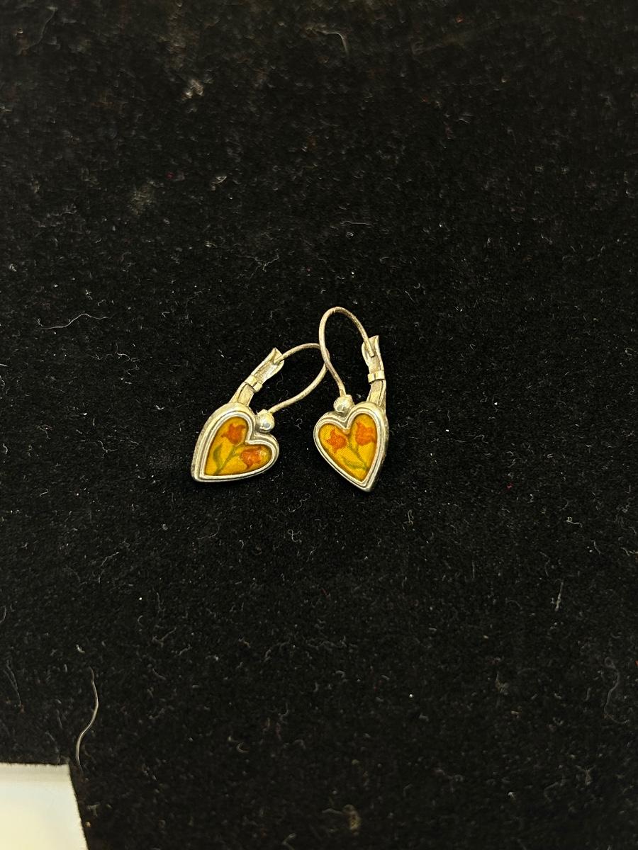 Pair of Small Silver Tone Heart Earrings with Flower Centers from Brighton