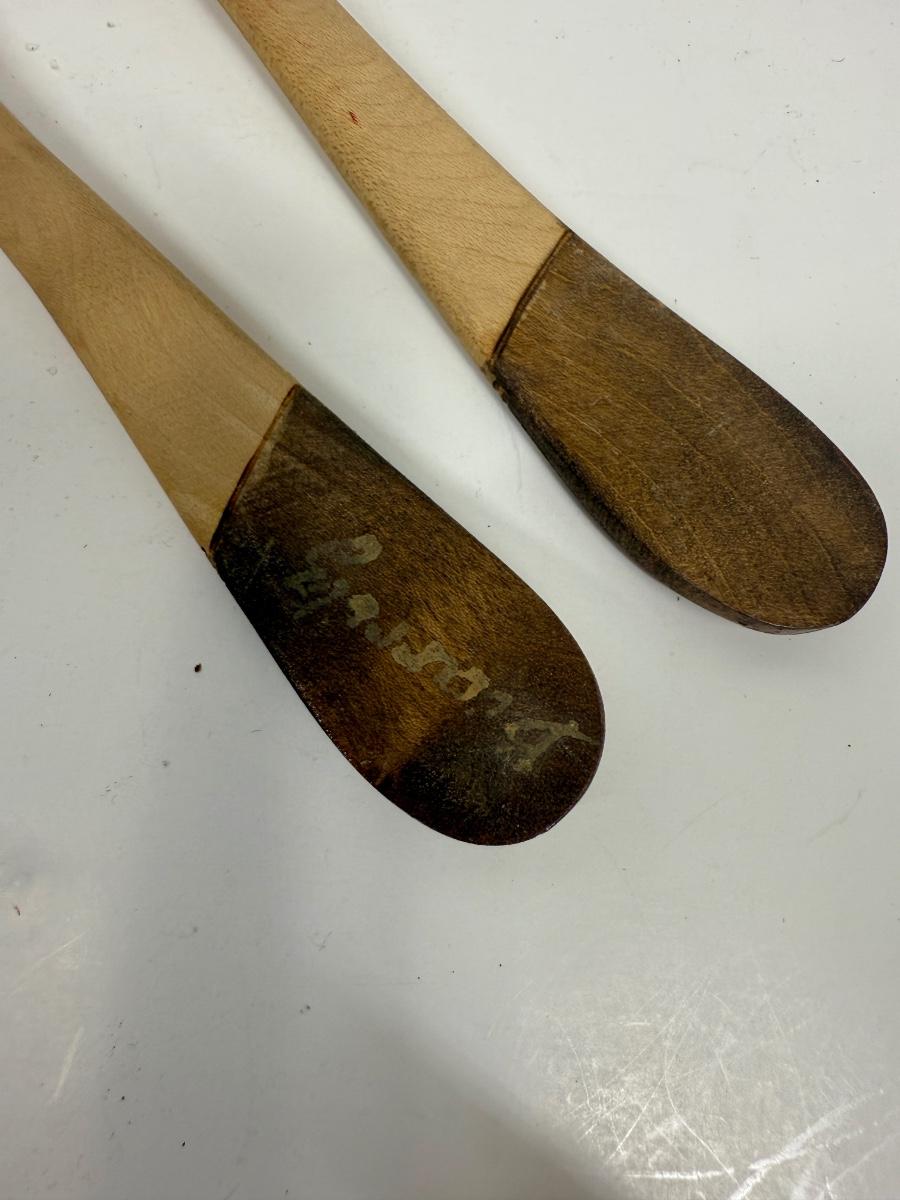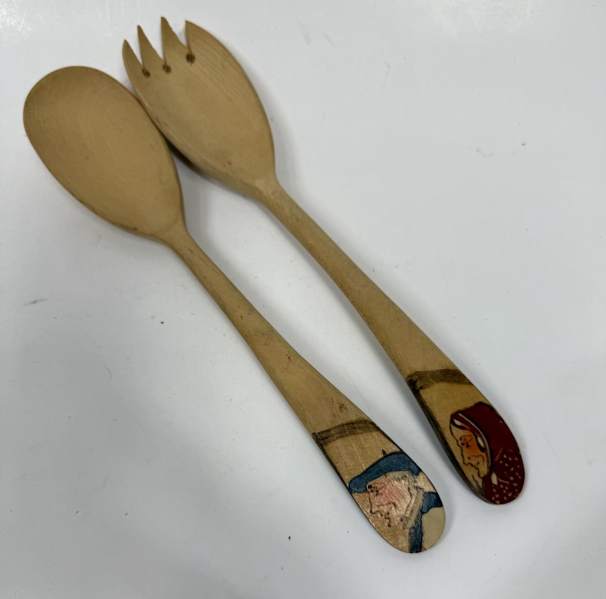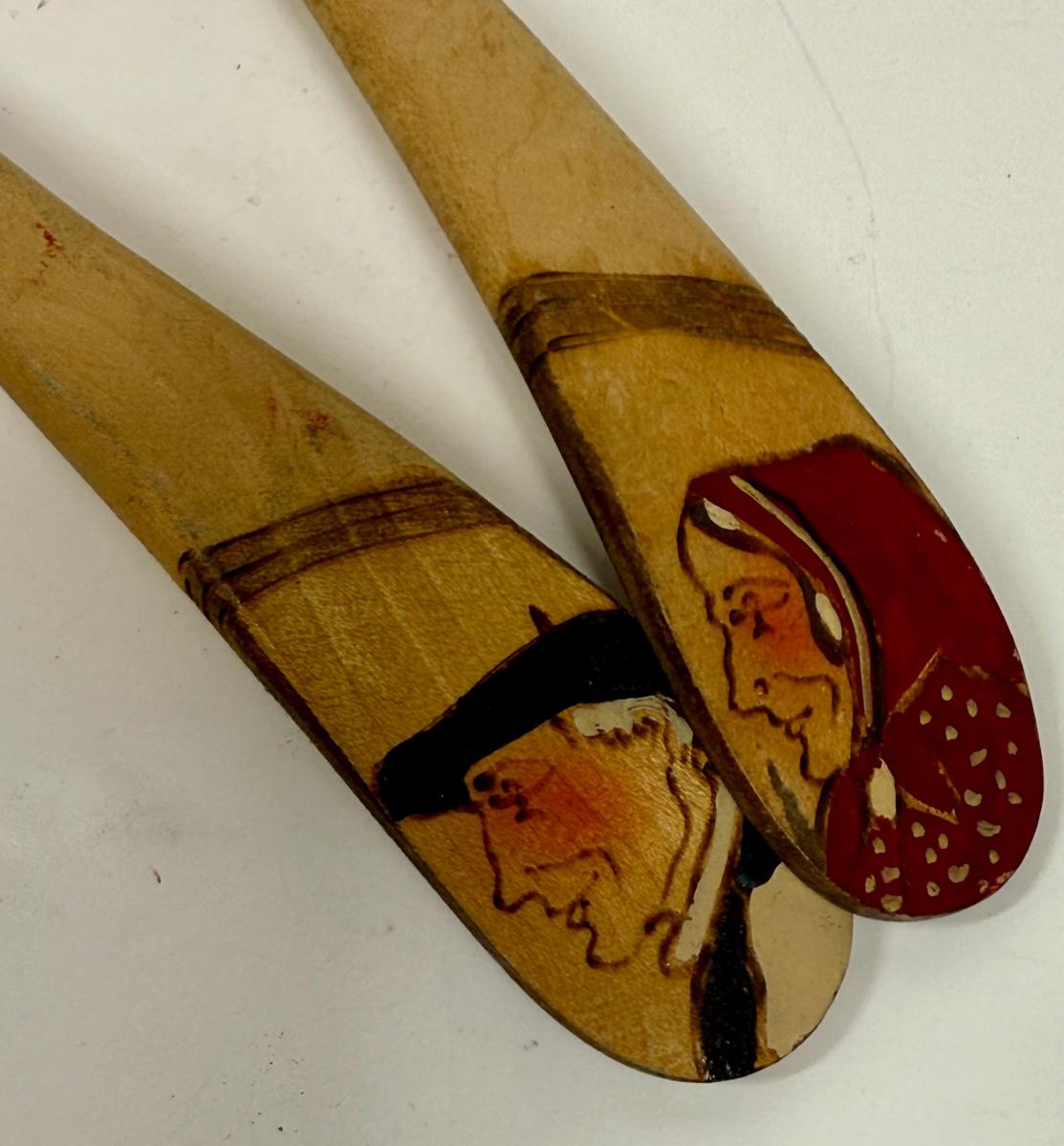 Approx. 9.5" long, good condition. Portraits of a man and a woman at the bottom of each handle.
