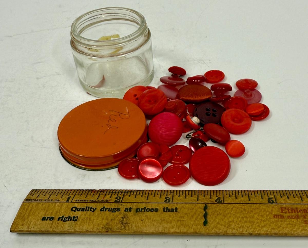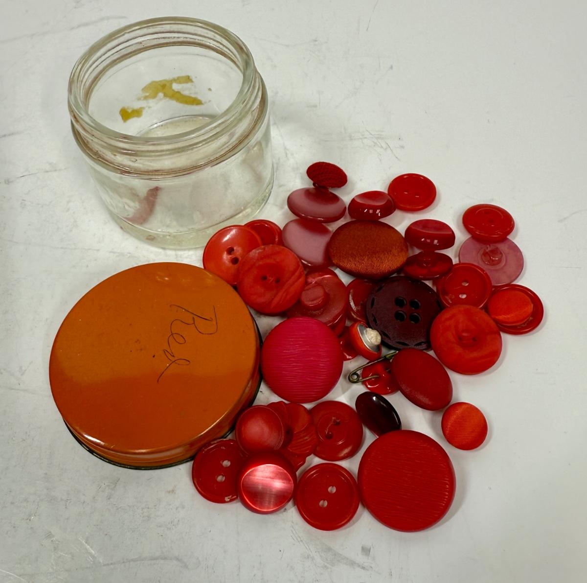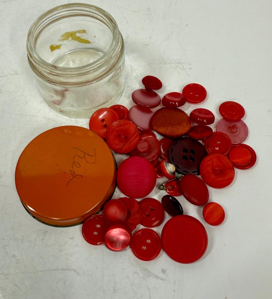 Vintage Button Lot #5 - Red Buttons in Retro Glass Jar with orange lid