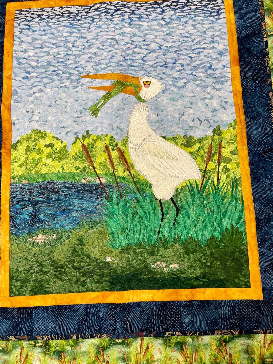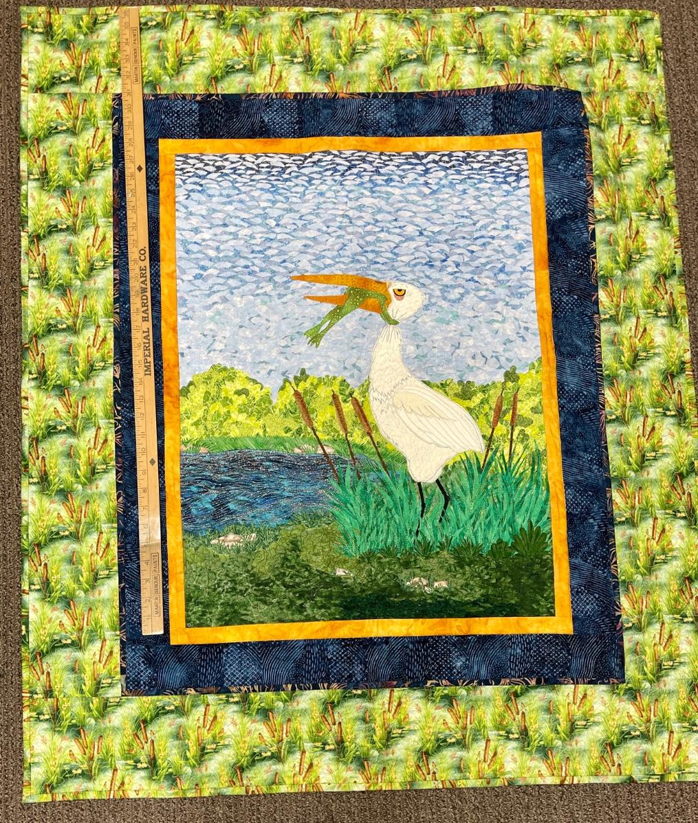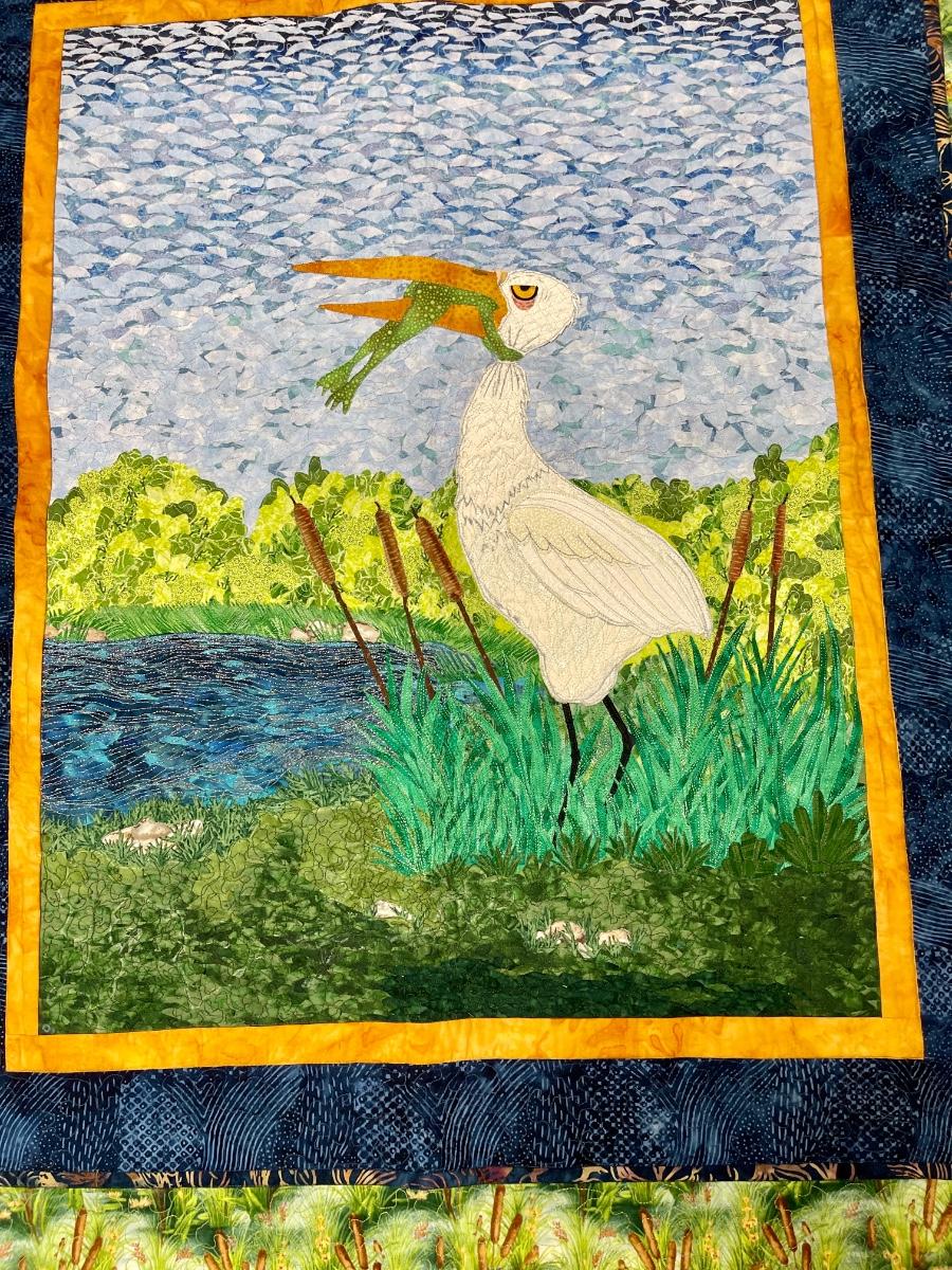 Handmade Small Quilt won 1st place Shasta County Fair in 2002 Crane with Fish in Mouth