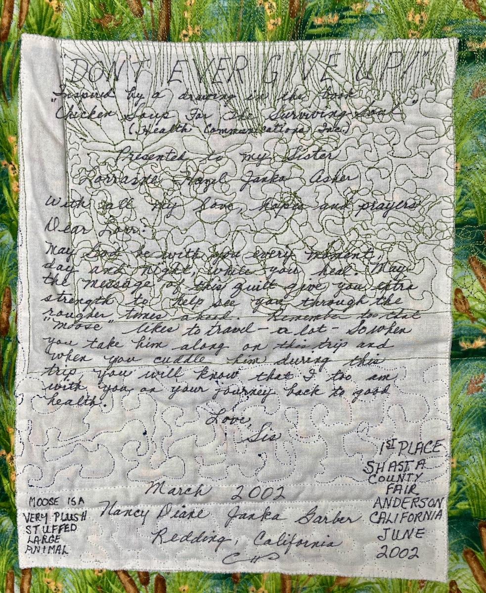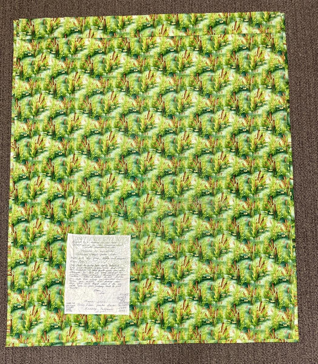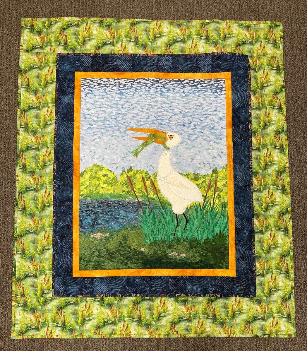 Handmade Small Quilt won 1st place Shasta County Fair in 2002 Crane with Fish in Mouth