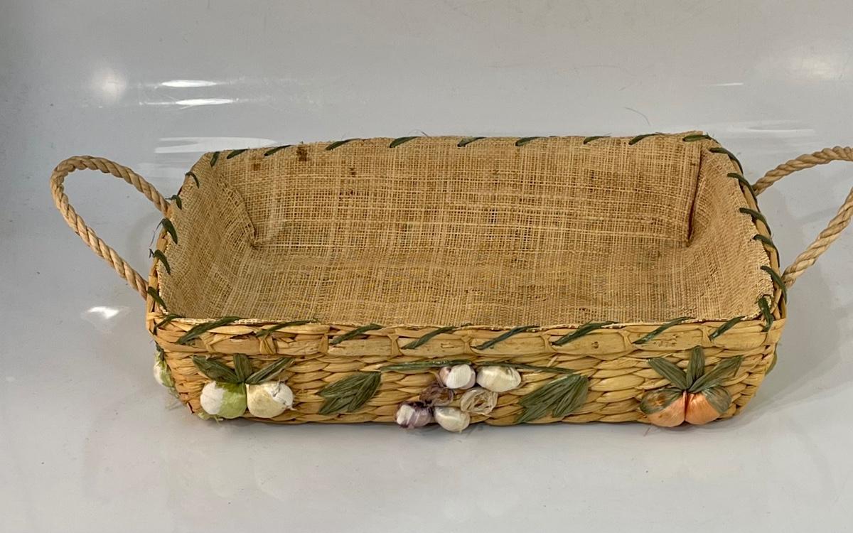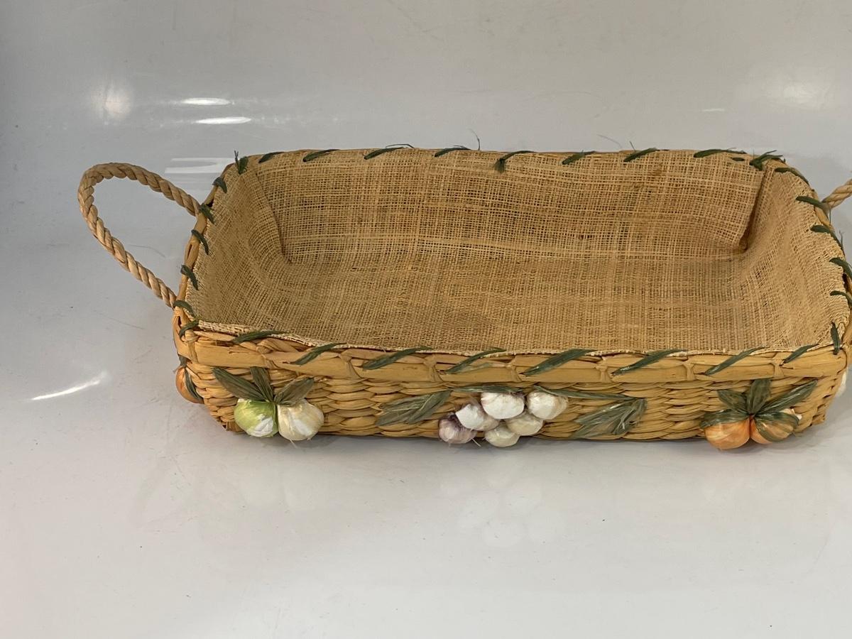 Mid-Century Fruit Style Woven Straw Raffia Basket with Jute Handles Dry Food storage
