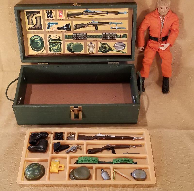 Includes marked wooden footlocker with contents (green belt) as shown in pictures.
