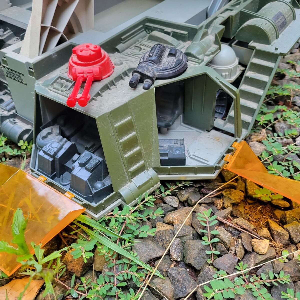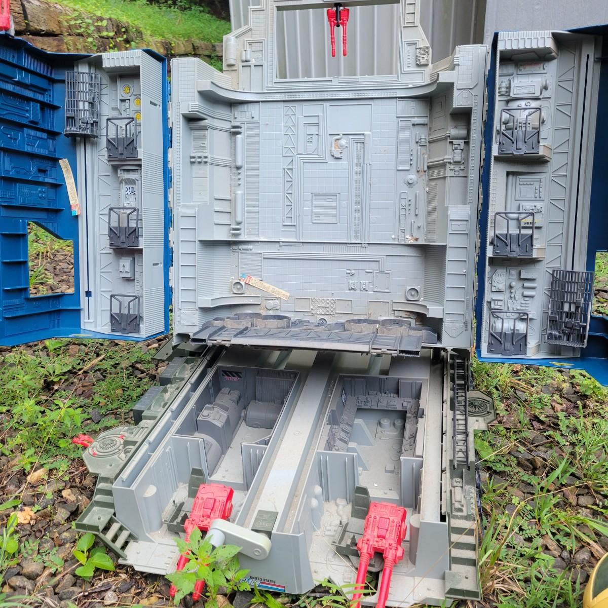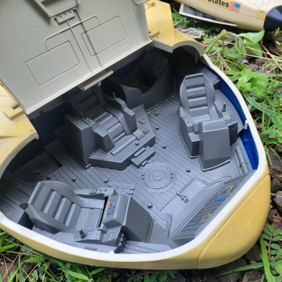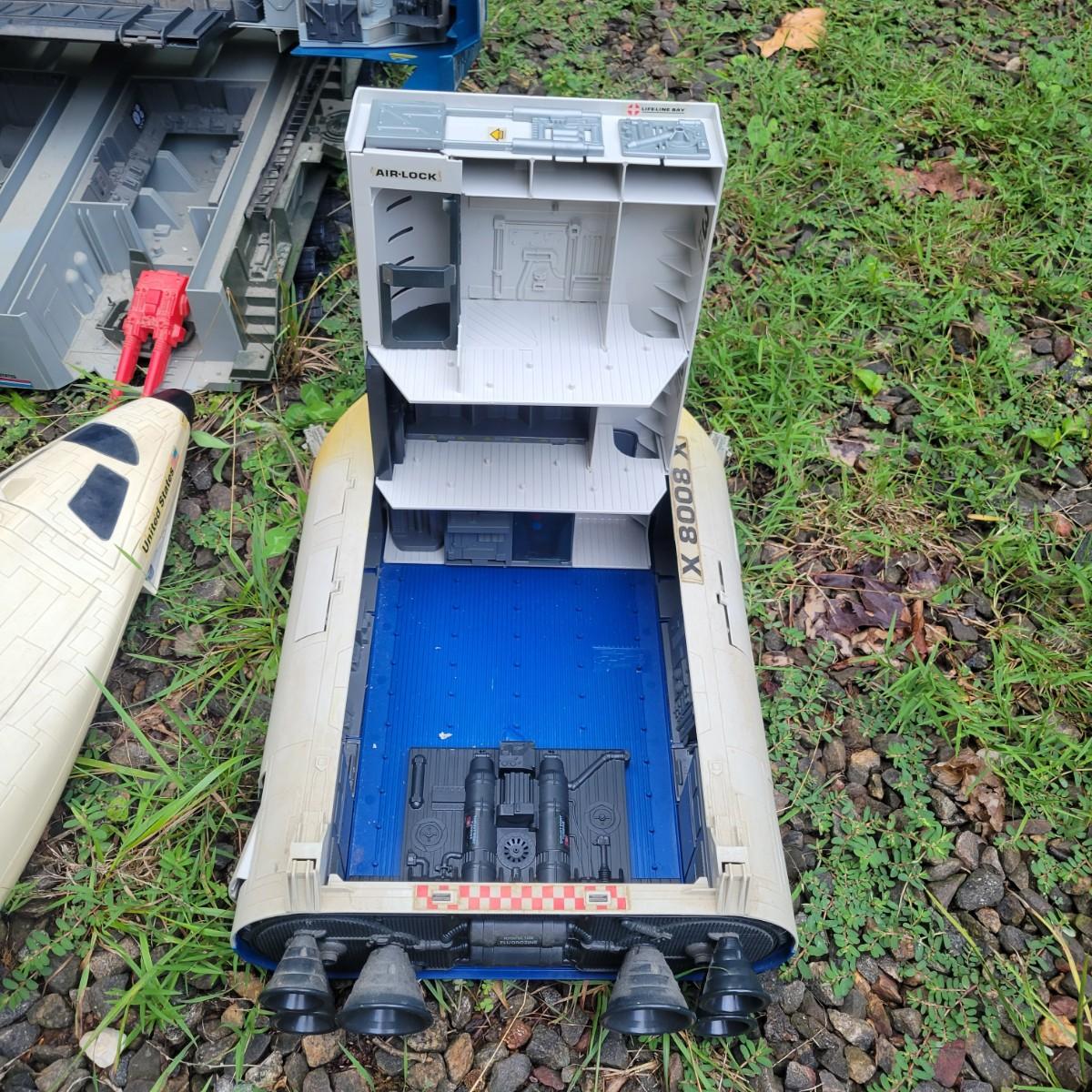 GI Joe Defiant Space Vehicle Launch Complex in good condition. The main fin on the the shuttle is broken and it appears to missing a gun on the complex, but is nearly complete. It is a little dusty from storage and has some sun fading. Lifting mechanism works, but is a little clunky. This is one of the largest GI Joe toys made and it is fairly rare to find one intact. Lot also includes most of the original instructions. Measures approximately 31" x 24" x 18" Shipping available.